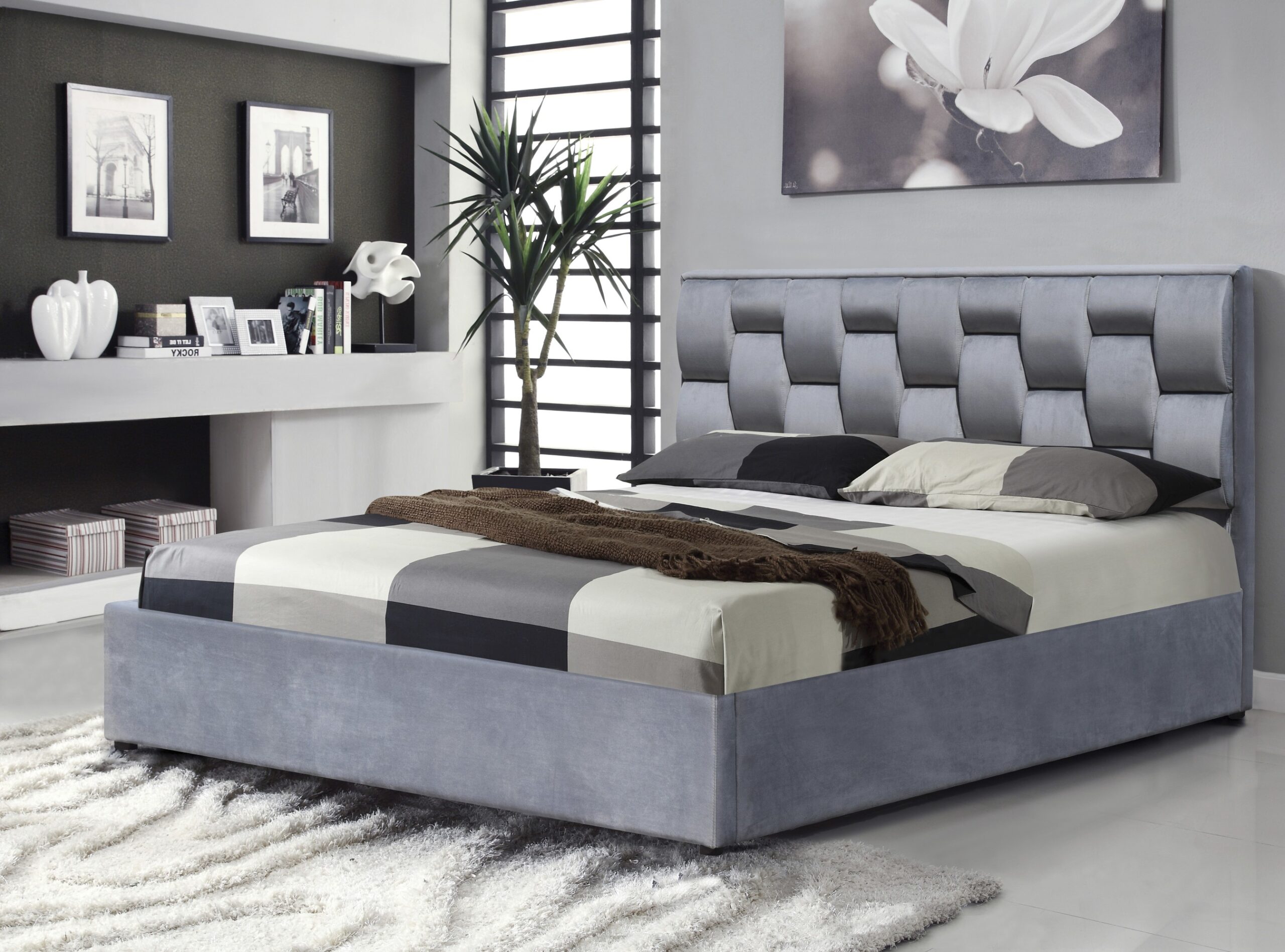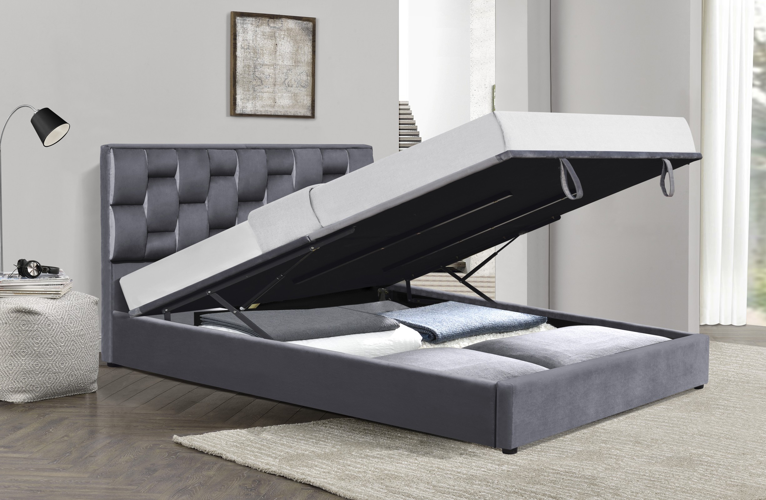 łóżko z pojemnikiem na pościel, materiał: tkanina, kolor: popielaty, * łóżko bez materaca, w opcji materac POLARIS 160