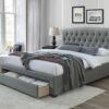 wymiary: 170/219/118 cm, łóżko z szufladą, materiał: tkanina / drewno lite, kolor: tkanina – popielaty, drewno – orzech, * łóżko bez materaca, w opcji materac POLARIS 160