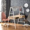 wymiary: 139/60/140 cm, biurko dwustanowiskowe, materiał: płyta meblowa, okleinowana – melamina / stal malowana proszkowo, kolor: dąb sonoma – biały