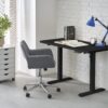 wymiary: 120/60/75-120 cm, biurko z funkcją regulacji wysokości, materiał: płyta meblowa laminowana / stal malowana proszkow, kolory: blat – czarny, stelaż – czarny