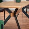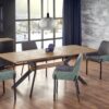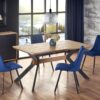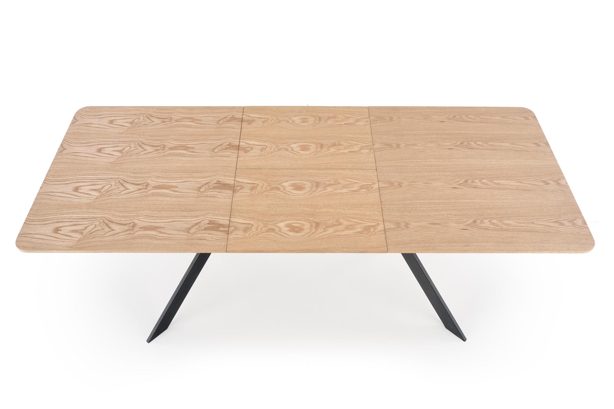 stół rozkładany, wymiary: 160-220/90/76 cm, materiał: MDF + okleina naturalna / stal malowana proszkowo, kolor: blat – dąb naturalny, nogi – czarny