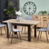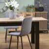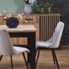 wymiary: 120-160/80/77/95 cm; stół rozkładany, materiał: płyta meblowa laminowana, kolor: blat – dąb artisan, nogi – czarny