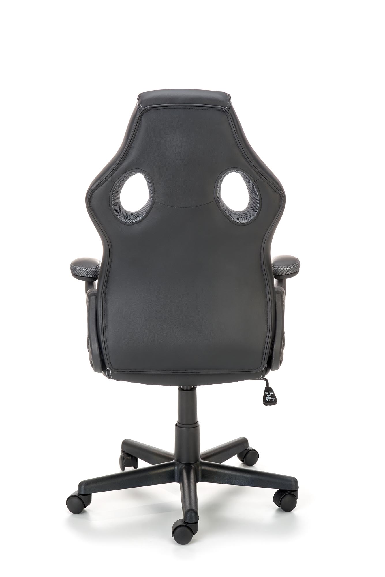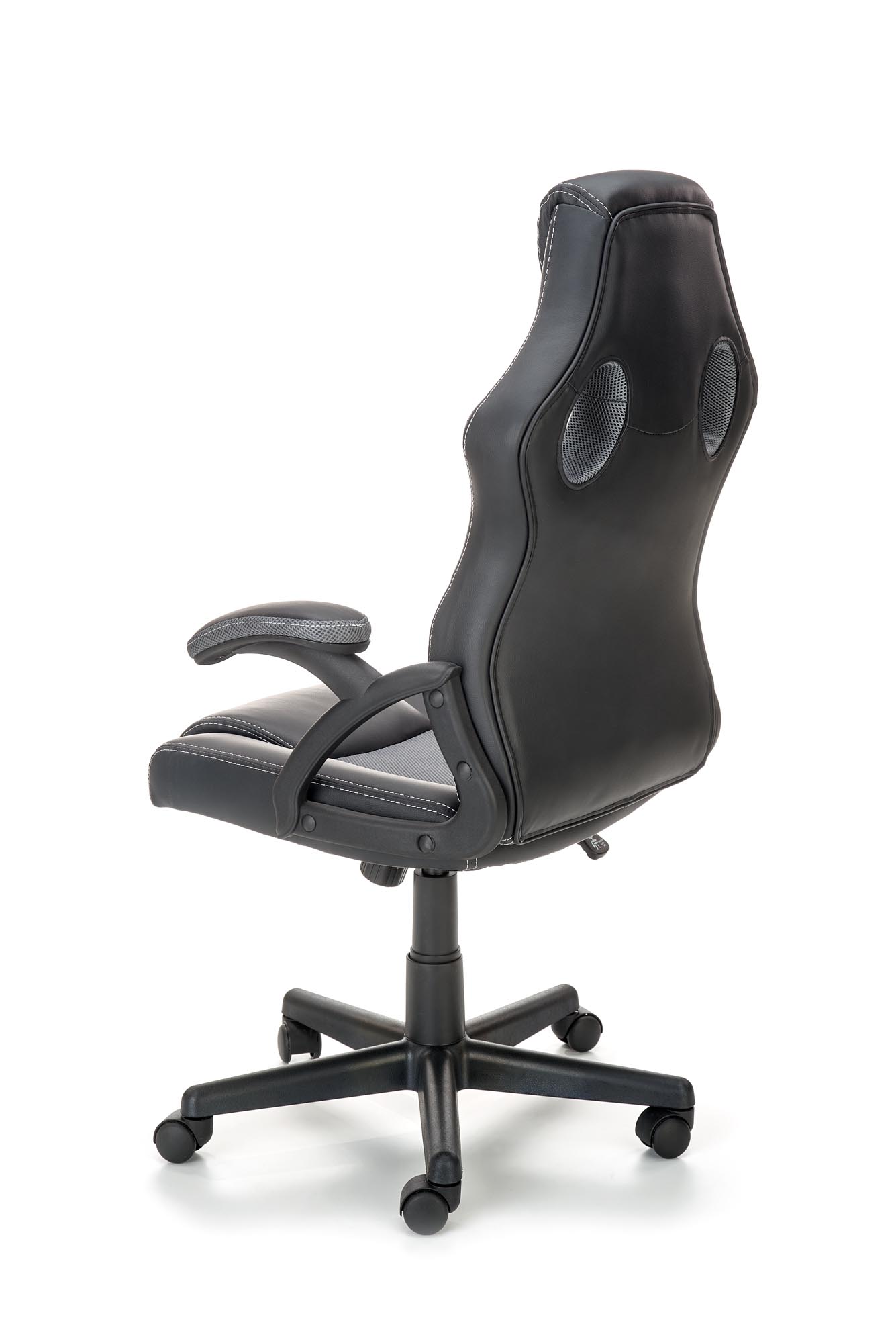 wymiary: 62/63/108-117/44-53 cm, mechanizm TILT, eco skóra / tkanina membranowa, kolor: czarny – popiel