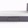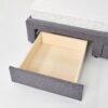 wymiary: 169/218/107 cm, łóżko z szufladami, materiał: tkanina / drewno lite, kolor: tkanina – popielaty, drewno – czarny