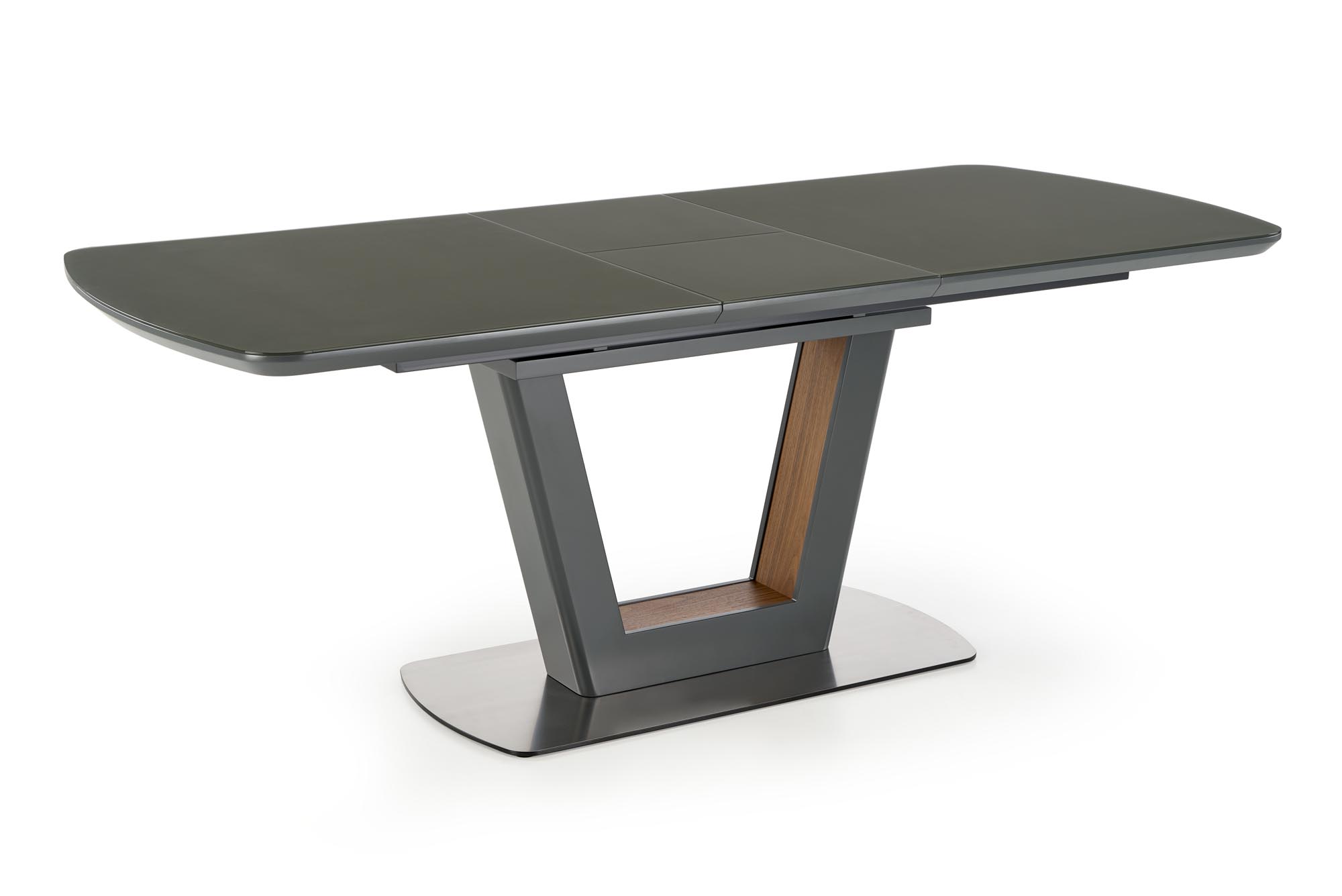 wymiary: 160÷200/90/76 cm, stół rozkładany, materiał: szkło / MDF lakierowany / MDF laminowany / stal nierdzewna, kolor: antracyt mat – orzech