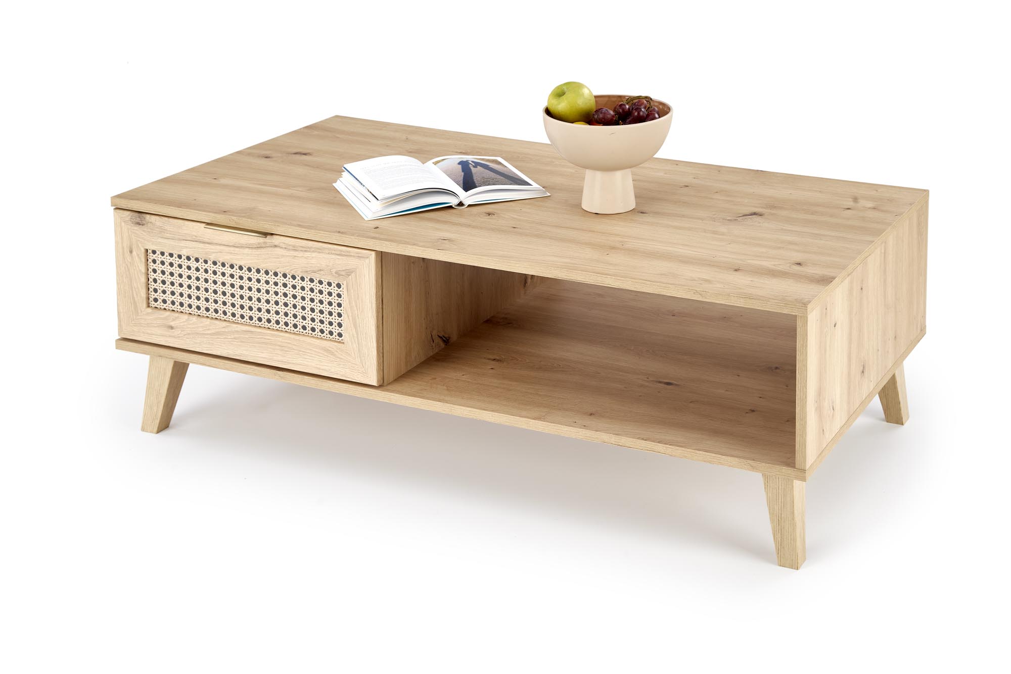 ława, wymiary: 120/60/41 cm, materiał: płyta meblowa laminowana / MDF laminowany / płyta HDF laminowana / polipropylen, kolor: dąb artisan – naturalny