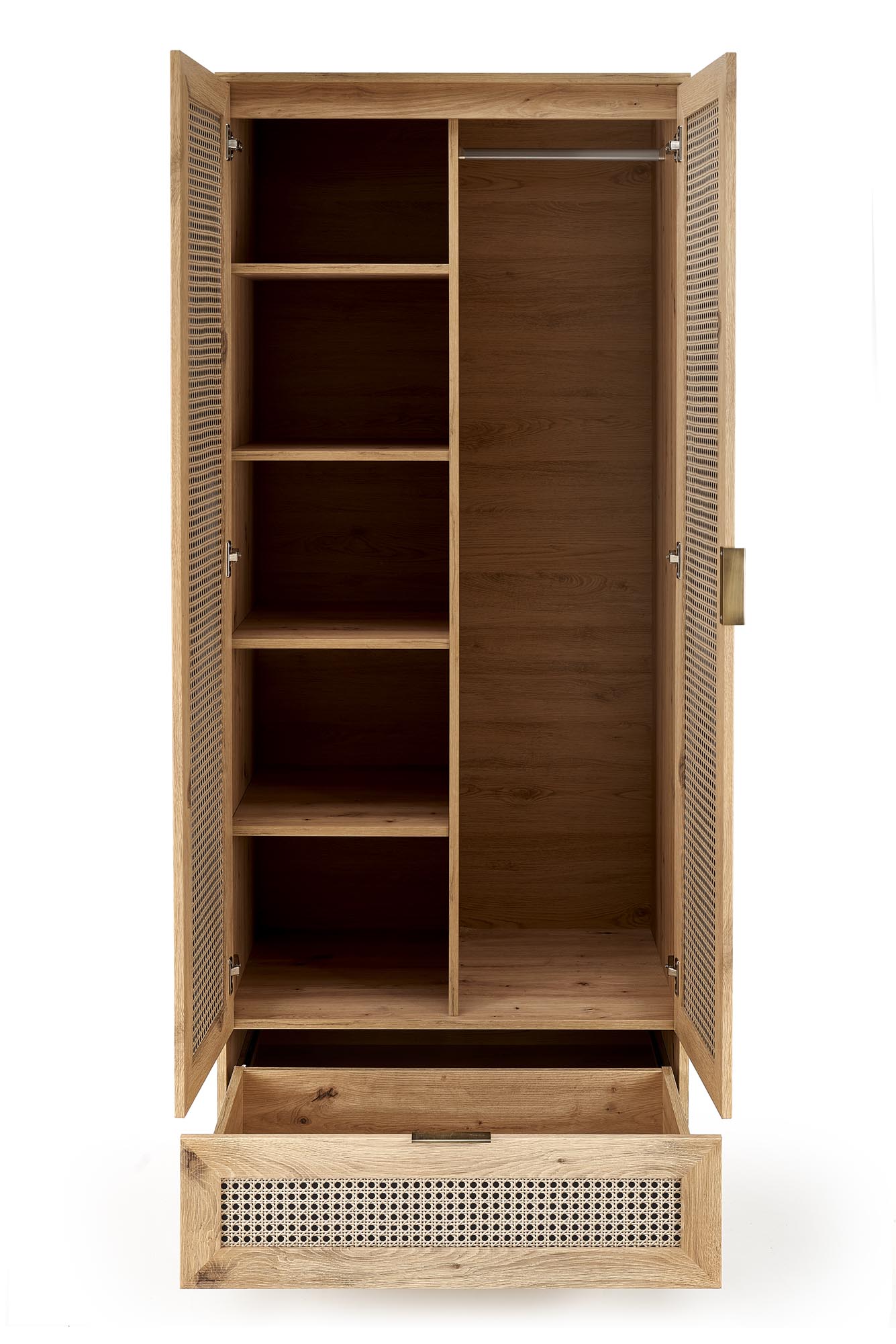 szafa, wymiary: 80/57/200 cm, materiał: płyta meblowa laminowana / MDF laminowany / płyta HDF laminowana / polipropylen, kolor: dąb artisan – naturalny