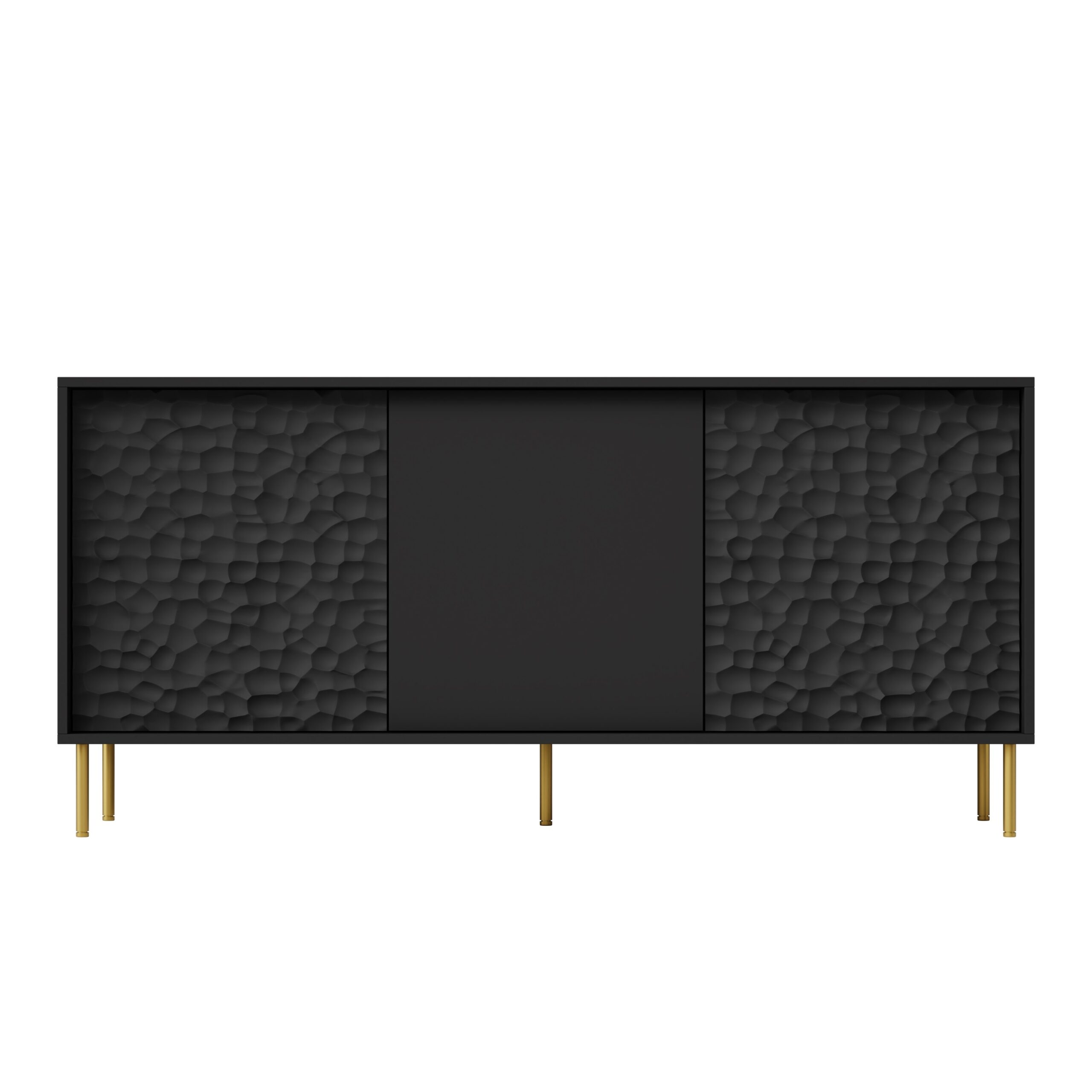 komoda, wymiary: 155/41/73 cm, materiał: płyta meblowa laminowana / MDF laminowany / nóżki – metal, kolor: czarny – złoty