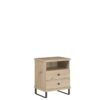 istnieje mozlwośc domówienia metalowych nóżek (10cm); wymiary: 48/40,6/50 materiał: płyta – laminowana płyta meblowa; czarna płyta – laminowana płyta meblowa (drzwi z lamelami); obrzeże – okleina ABS; tył szafki – płyta HDF