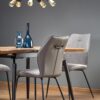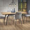 wymiary: 140-180/80/74 cm, stół rozkładany, materiał: MDF okleinowany / stal malowana proszkowo, kolor: blat – dąb naturalny, nogi – czarny