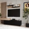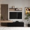 zestaw mebli, materiał: płyta meblowa laminowana 16 mm, zawiasy: Hettich Slide-On, prowadnice kulkowe Hafele, system push to open; kolor: dąb artisan/czarny