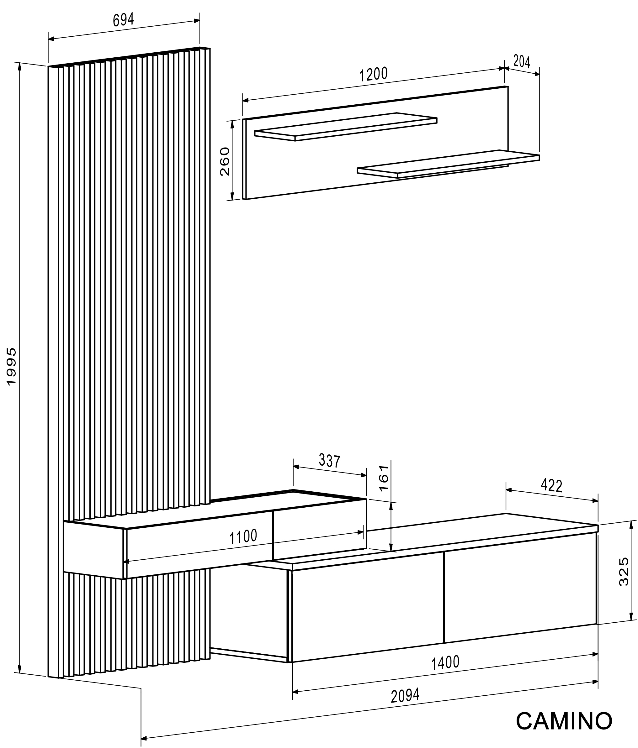 CAMINO zestaw, kolor: dąb artisan – czarny (3p=1szt)