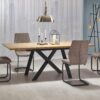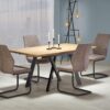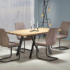 stół rozkładany, wymiary: 160-200/90/76 cm, materiał: MDF okleinowany / stal malowana proszkowo, kolor: blat – dąb złoty, nogi – czarny