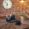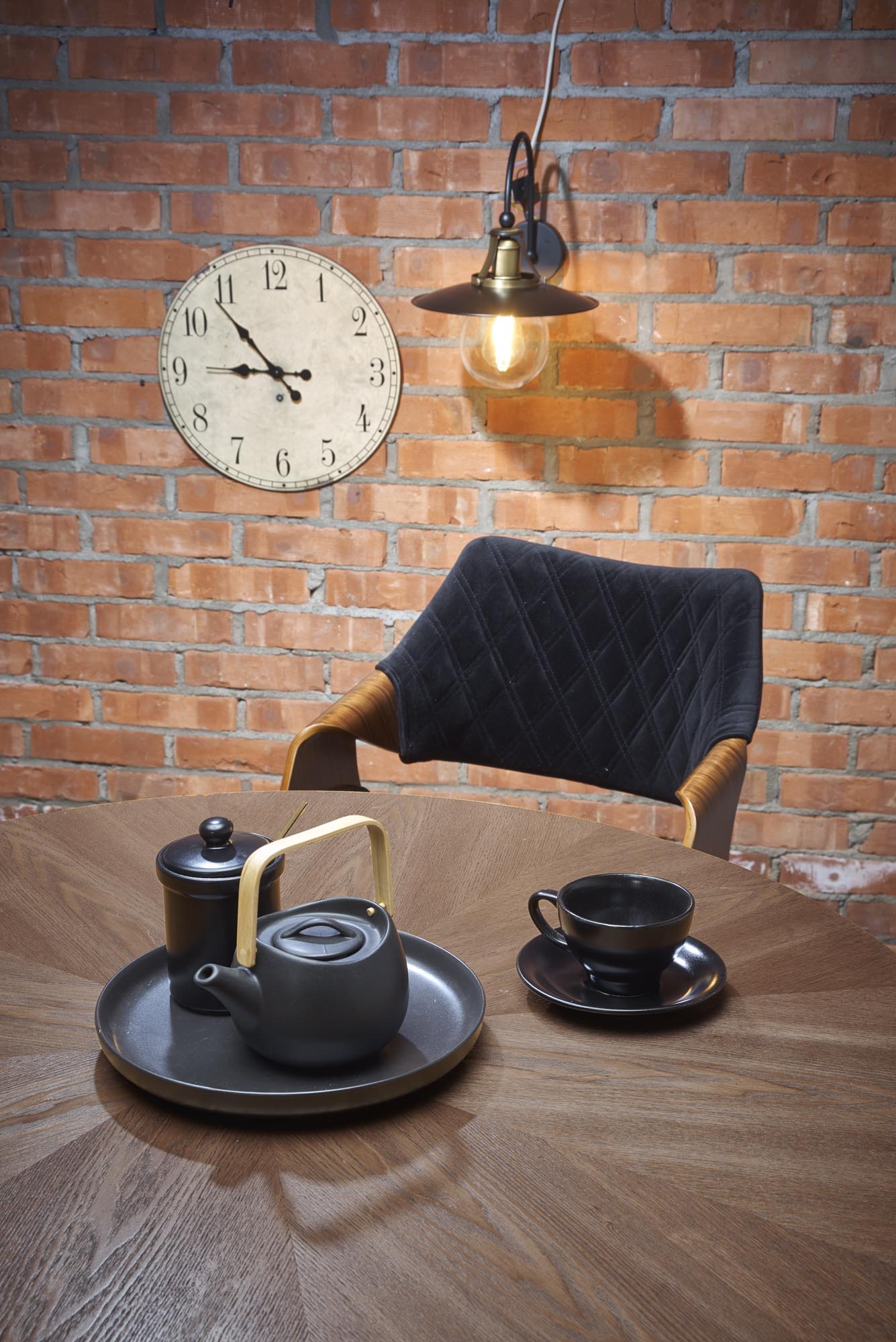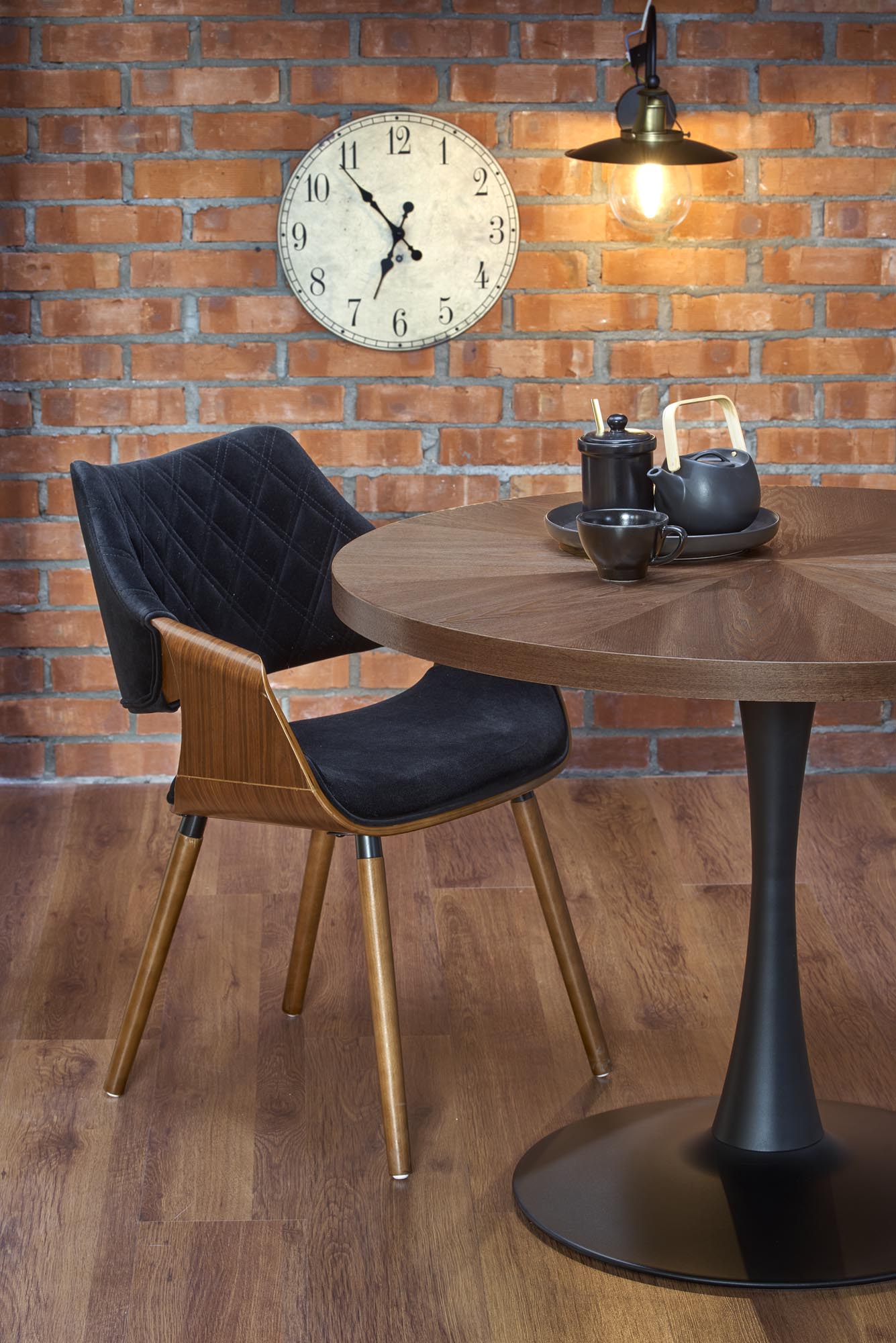 CARMELO stół okrągły, blat – orzech, noga – czarny (3p=1szt)