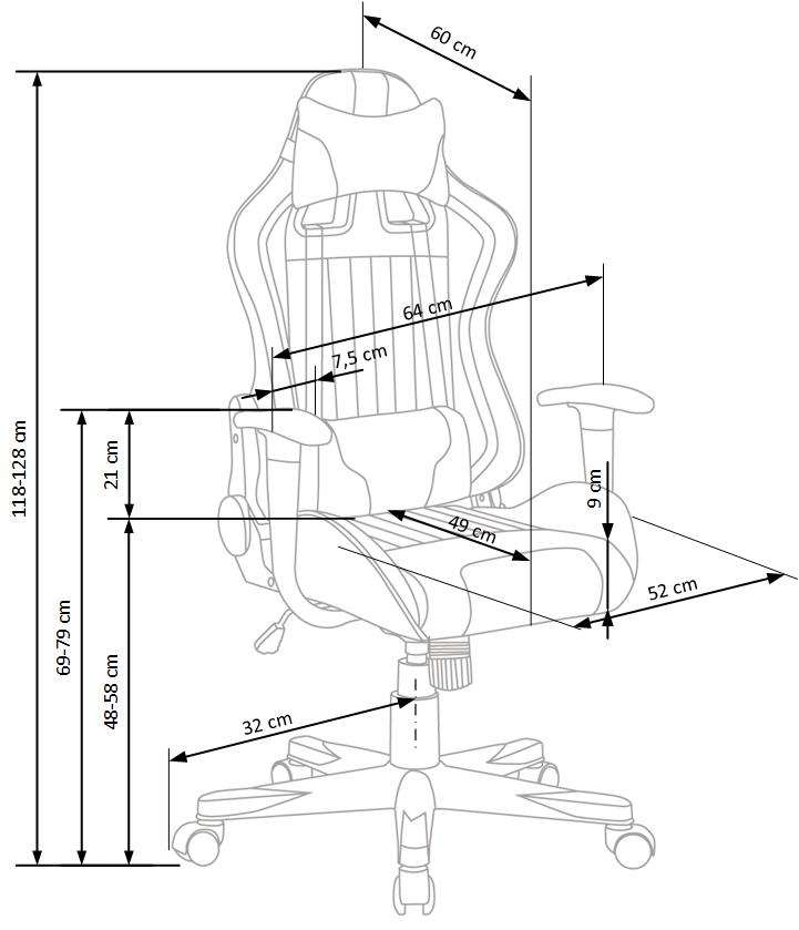 wymiary: 64/60/118-128/48-58 cm, mechanizm TILT, tkanina membranowa, kolor: jasny popiel – turkusowy
