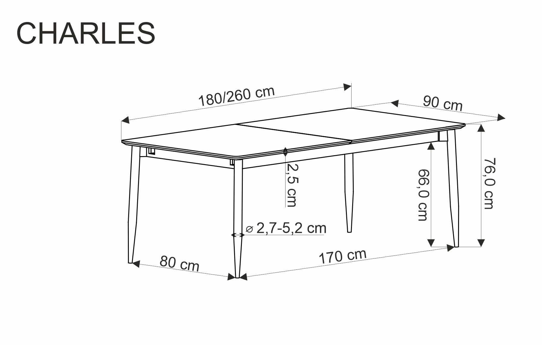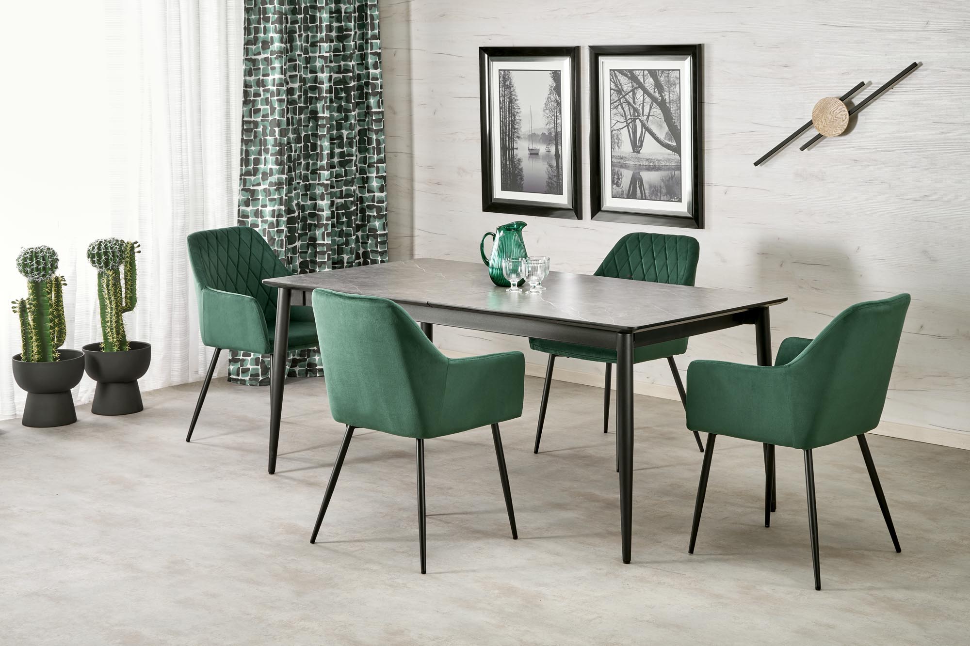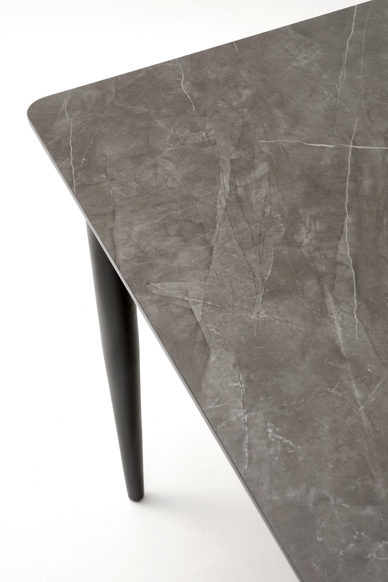 CHARLES stół rozkładany, blat – popielaty marmur, nogi – czarny