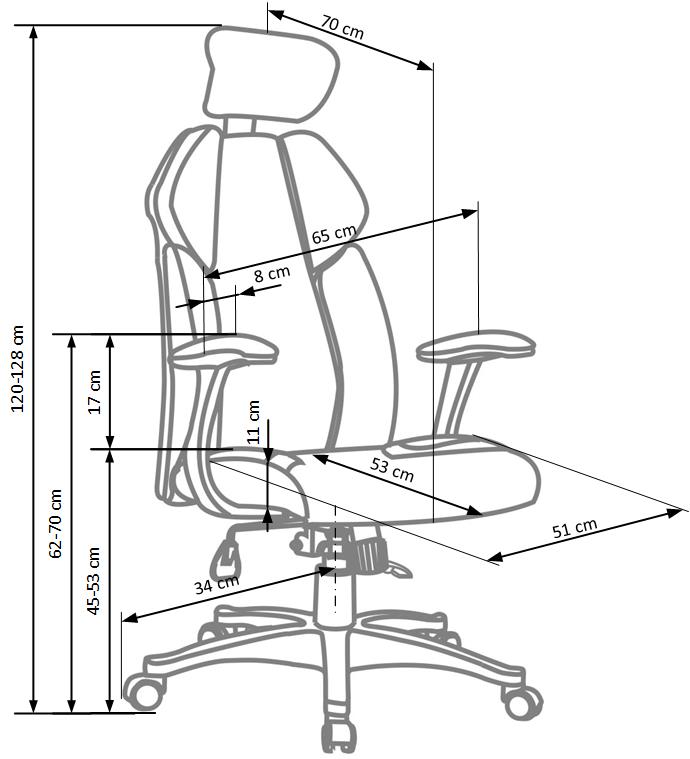 mechanizm multiblock, regulowany zagłówek, wymiary: 65/70/120-128/45-53 cm, wymiary: tkanina / eco skóra, kolor: czarno-biały