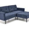 wymiary: 200/153-167/80-40 cm, podnóżek – 97/71/42 cm, sofa rozkładana z podnóżkiem, materiał: tkanina / grewno lite, kolor: niebieski