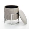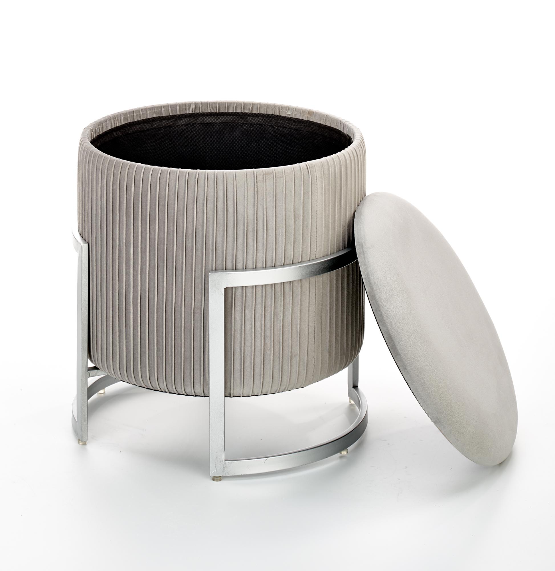 wymiary: fi40/46 cm, pufa z funkcją pojemnika, materiał: tkanina – velvet / stal malowana proszkowo, kolor: jasny popiel