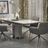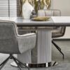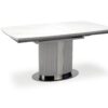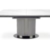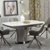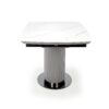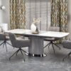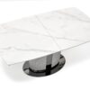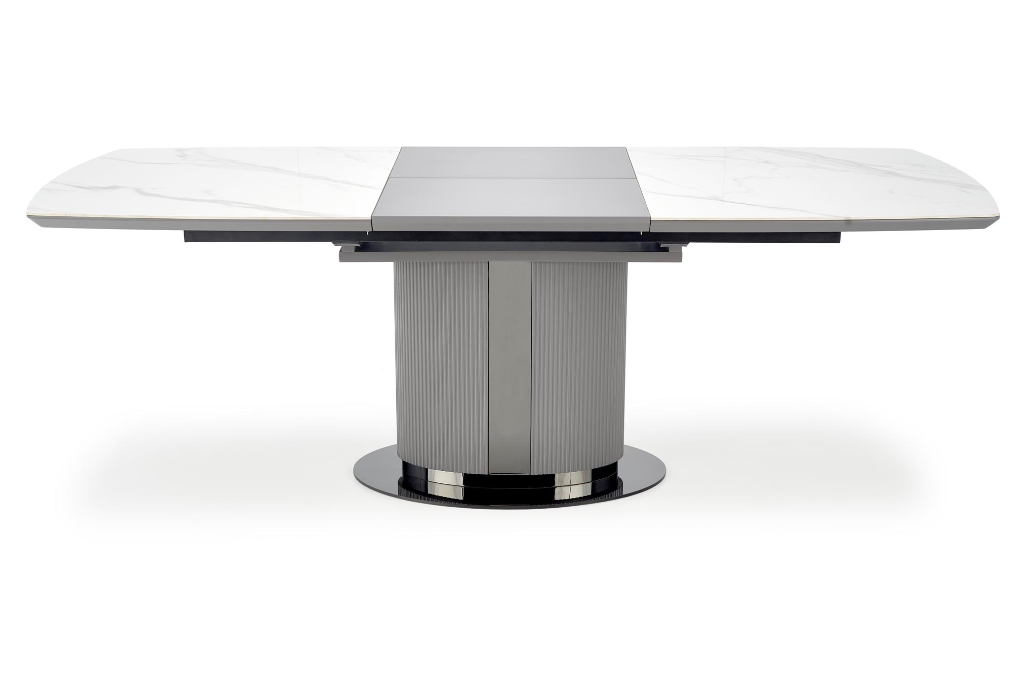 wymiary: 160-220/90/76 cm, stół rozkładany, materiał: ceramika / MDF lakierowany / stal malowana proszkowo, kolor: blat – biały marmur / popielaty, noga – jasny popiel / czarny