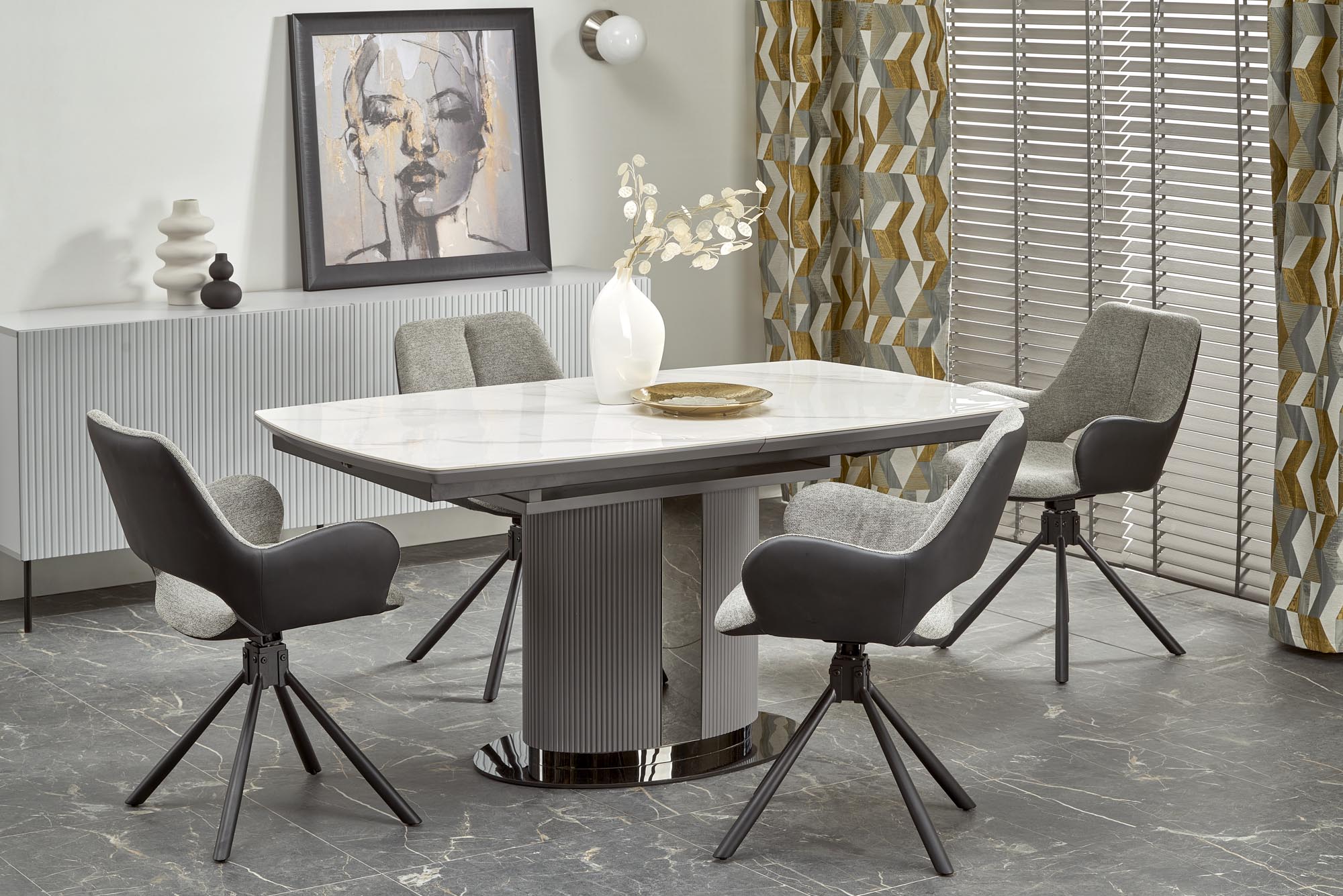 DANCAN stół rozkładany, biały marmur / popielaty / jasny popielaty / czarny (3p=1szt))