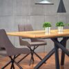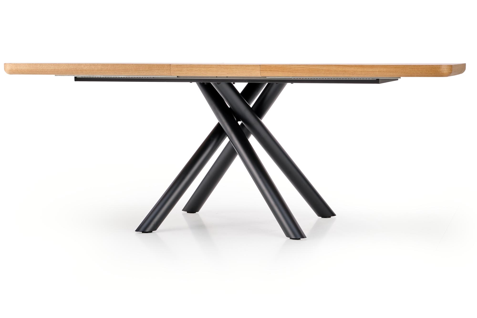 wymiary: 160-200/90/75 cm, stół rozkładany, materiał: MDF + okleina naturalna / stal malowana proszkowo, kolor: blat – dąb naturalny, nogi – czarny