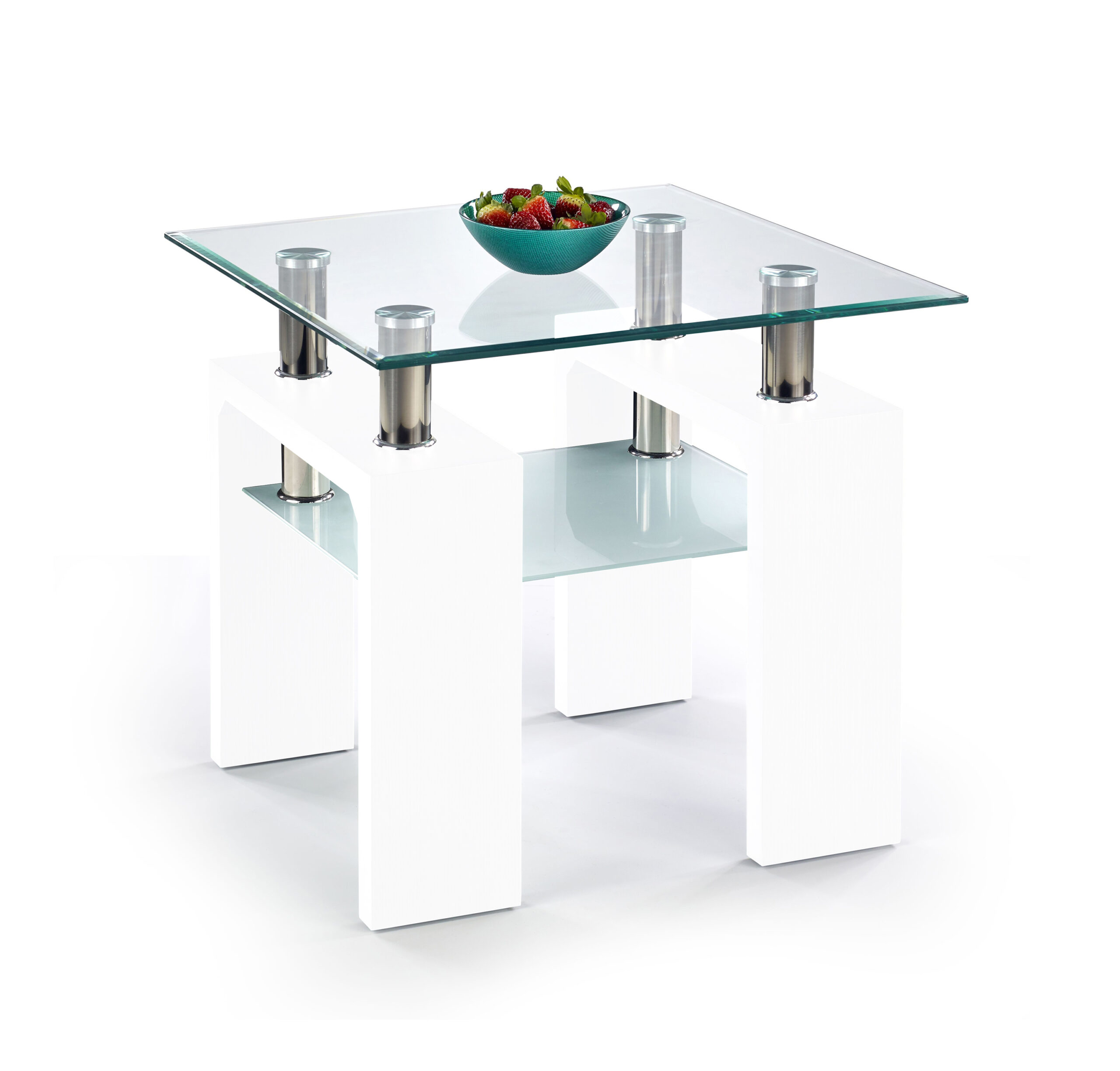 wymiary: 60/60/55 cm, materiał: szkło / MDF lakierowany, kolor: biały