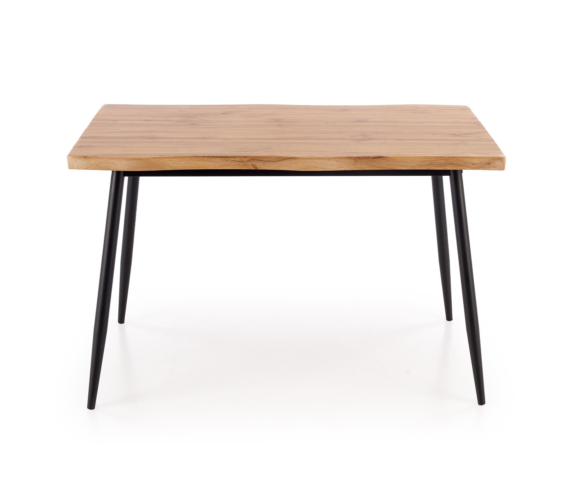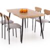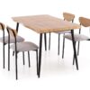 zestaw DICKY stół + 4, wymiary: stół – 120/80/75 cm, krzesła – 42/43/76/45 cm, materiał: płyta meblowa okleinowana / stal malowana proszkowo / tkanina, kolor: naturalny / czarny / popielaty