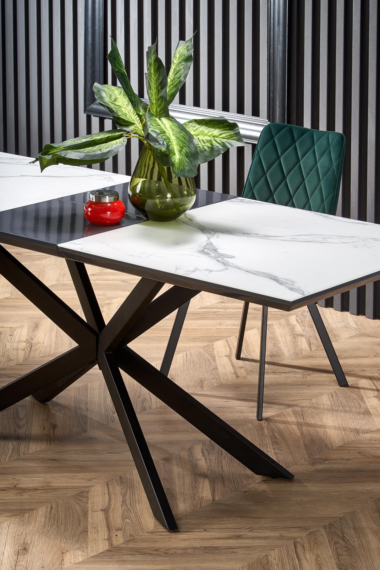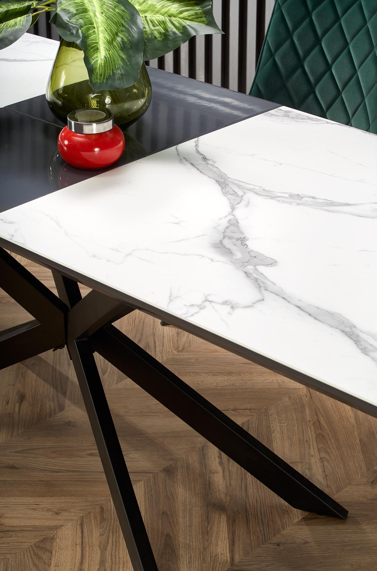 DIESEL stół rozkładany blat – biały marmur / c. popiel, nogi – czarny (2p=1szt)