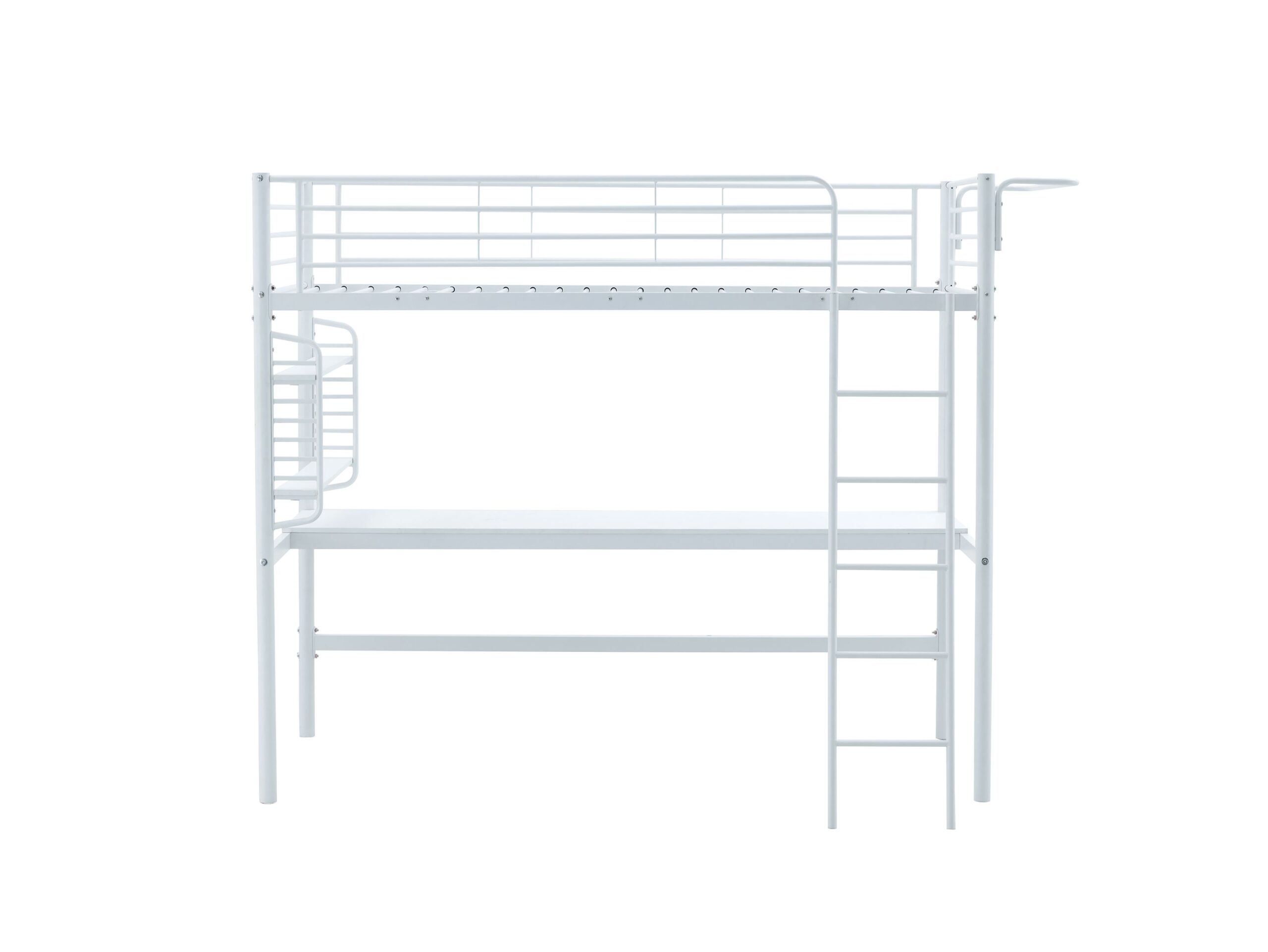 łóżko piętrowe z biurkiem i organizerem, materiał: stal malowana proszkowo / MDF okleinowany, kolor: biały ,* łóżko bez materaca, w opcji materac POLARIS 90 lub SYRIUSZ 90