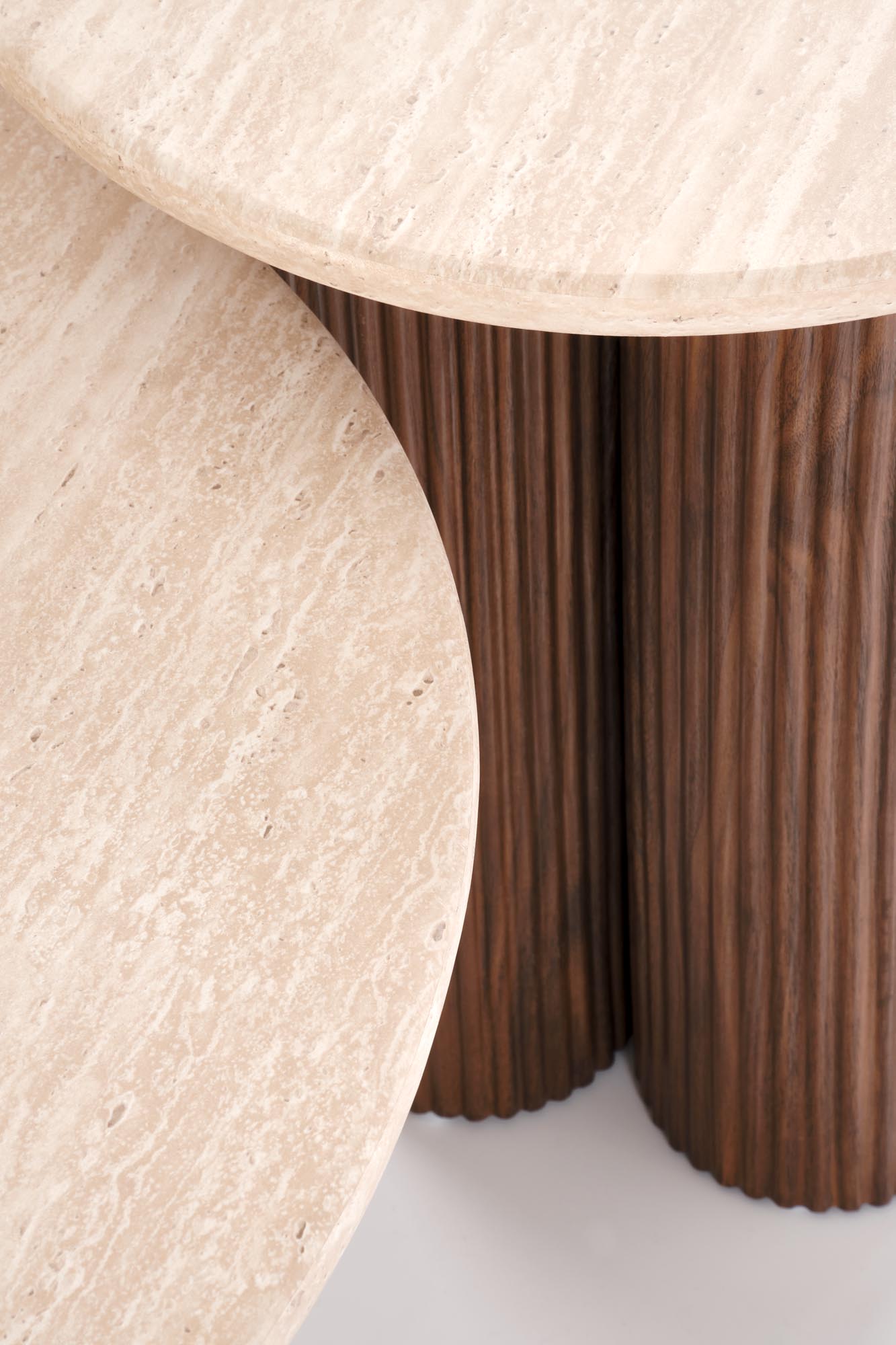 wymiary: fi50/56 cm, materiał: MDF okleinowany, kolor: orzech – trawertyn