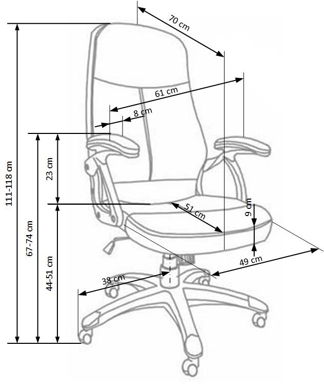 mechanizm multiblock, kółka powlekane kauczukiem, wymiary: 64/70/111÷118 cm, materiał: eco skóra perforowana, kolor: czarny