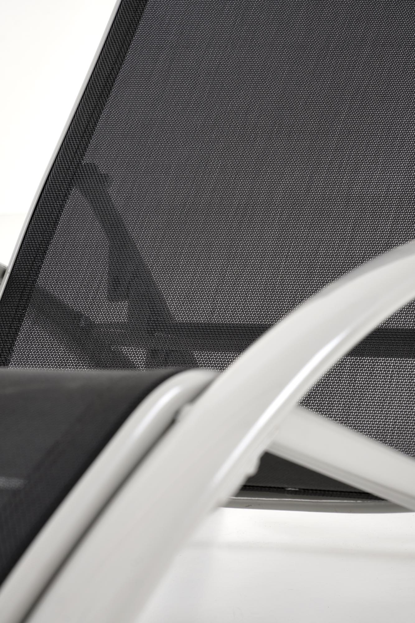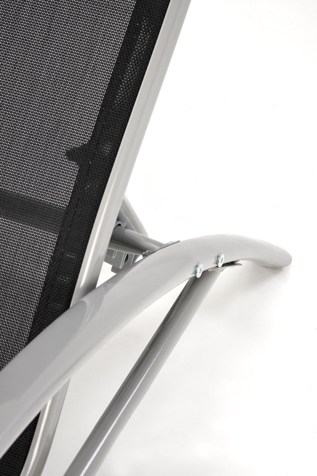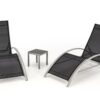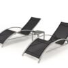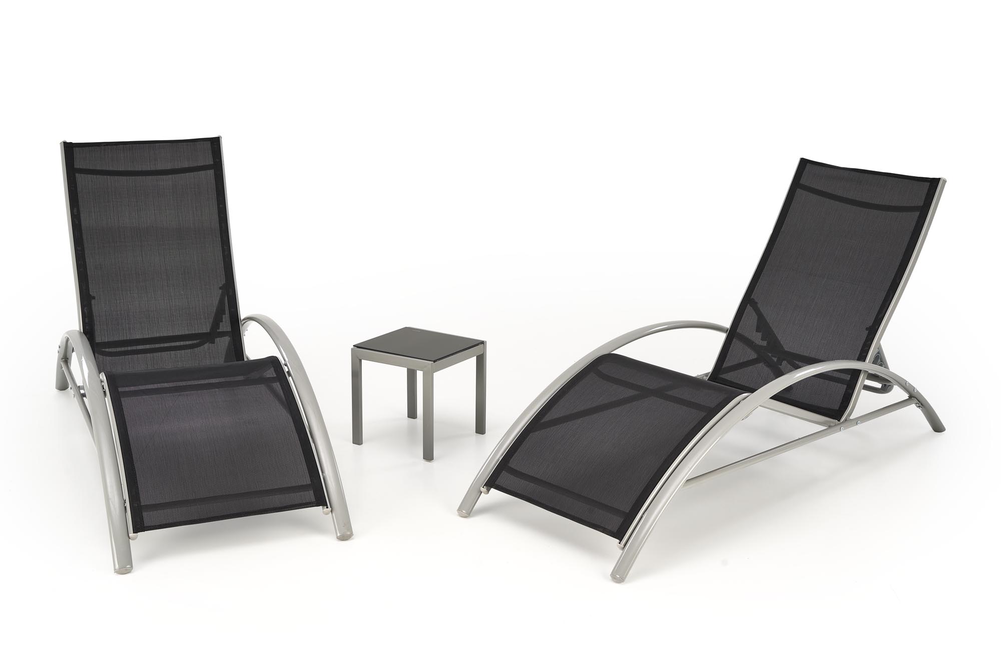zestaw 2 leżaków ze stolikiem, wymiary: 160/60/66-92 cm – leżak, 30/30/30 cm – stolik, materiał: siatka / stal malowana proszkowo, kolor: czarny / jasny popiel