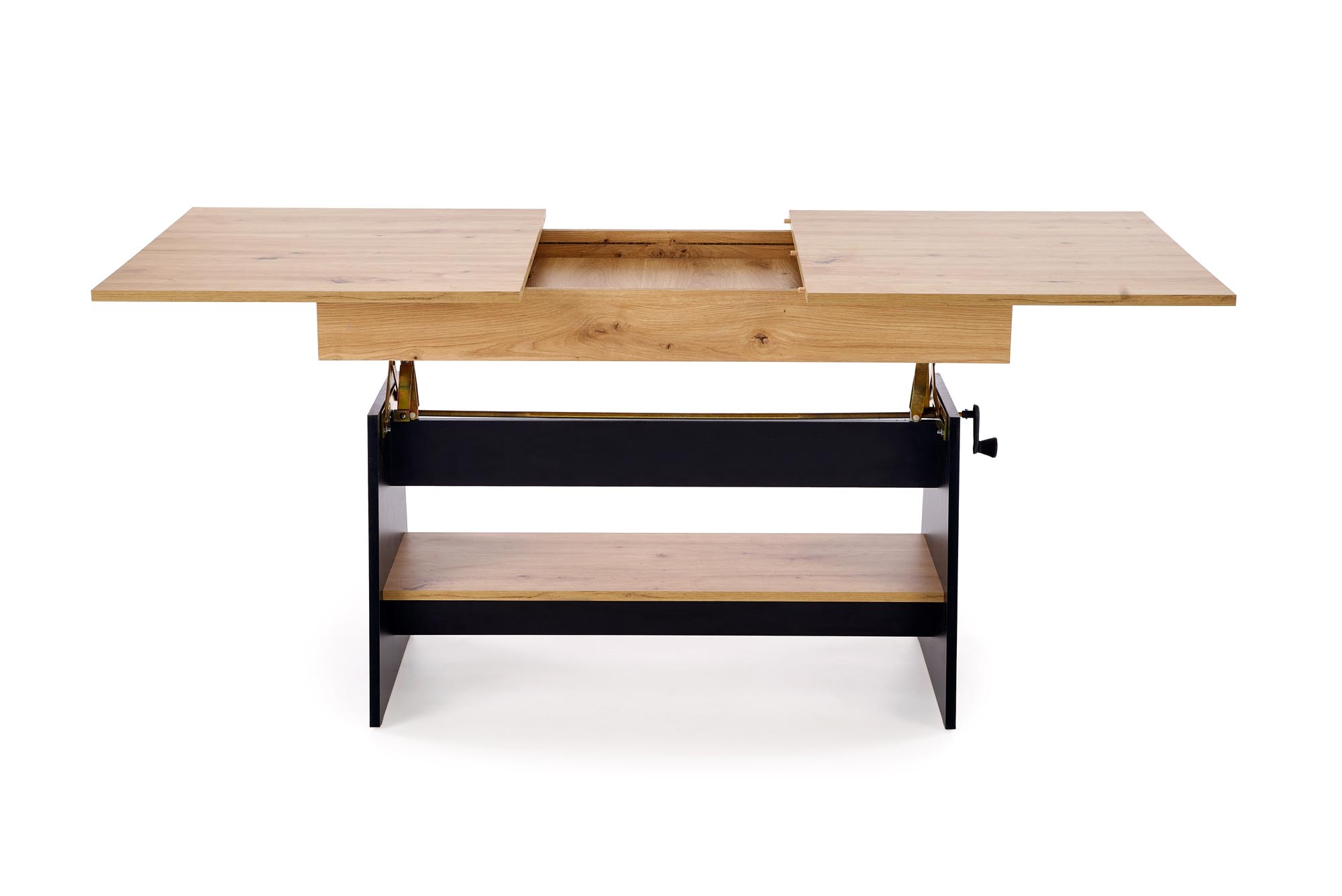 wymiary: 120-160/70/61-72 cm, ławostół rozkładany, materiał: płyta meblowa laminowana, kolor: dąb artisan / czarny