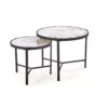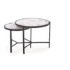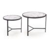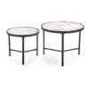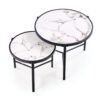 wymiary: 63/50 cm oraz 48/43 cm; zestaw 2 ław, materiał: spiek / stal malowana proszkowo, kolory: biały marmur / czarny