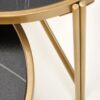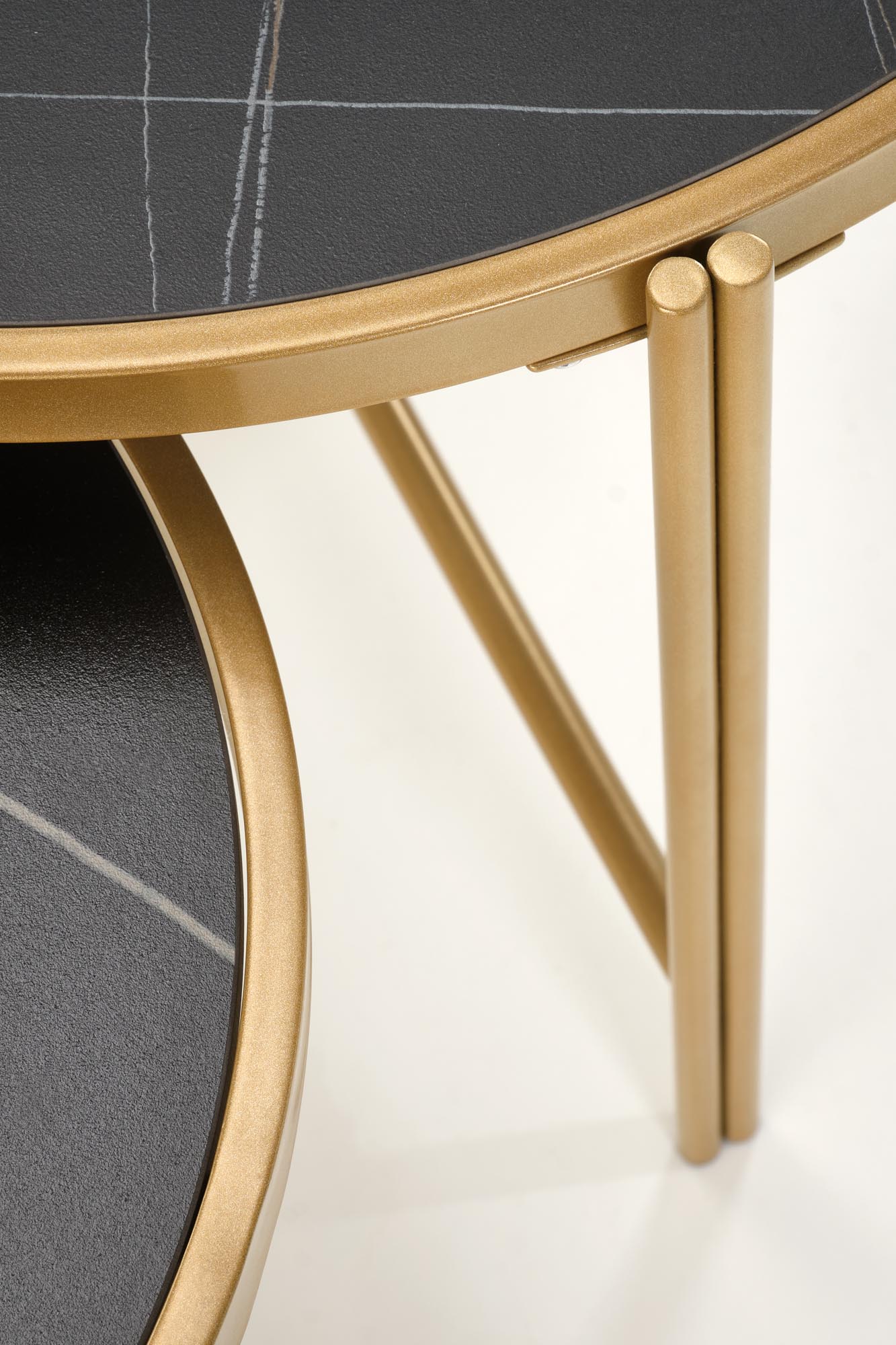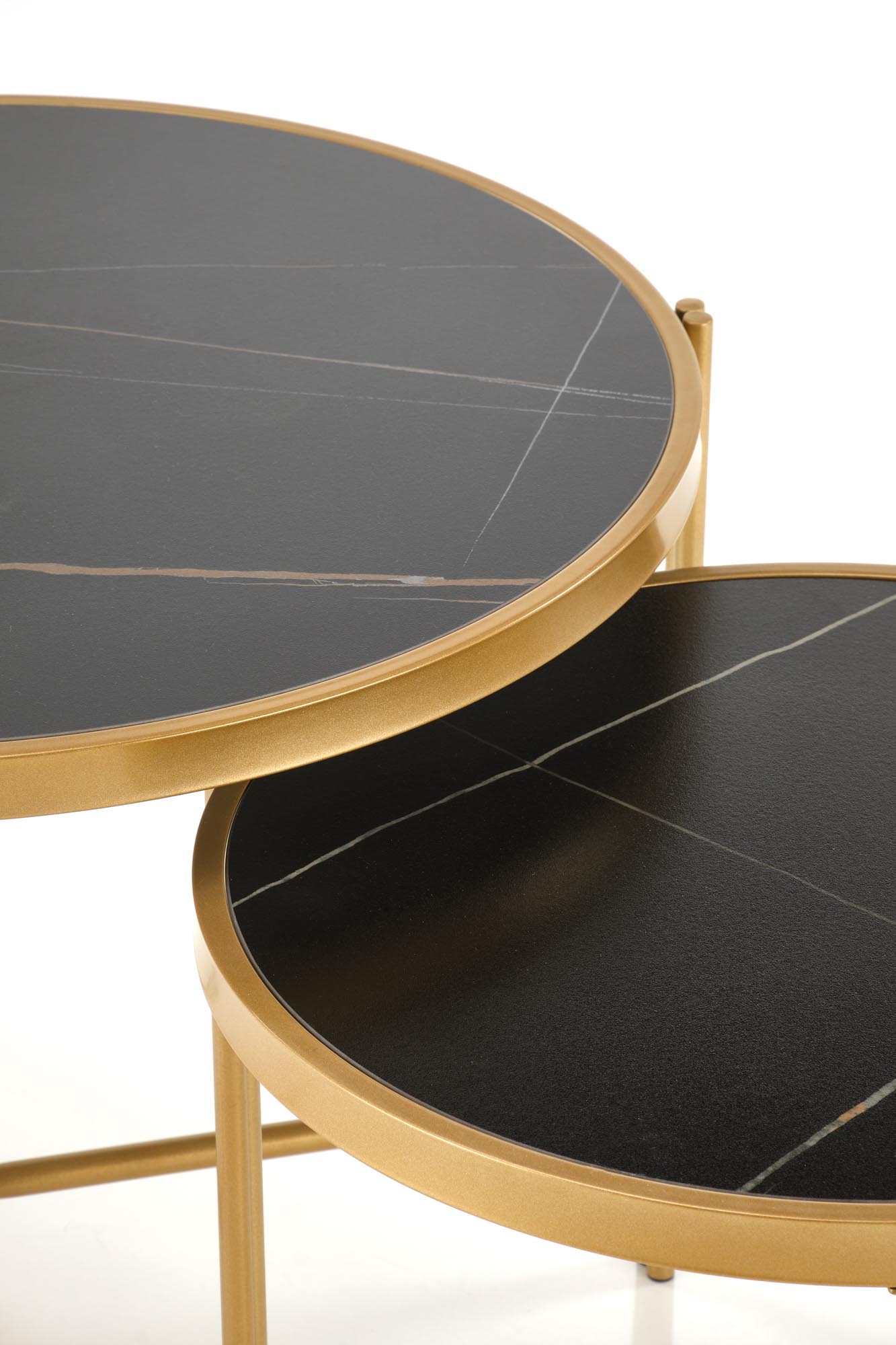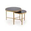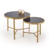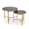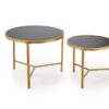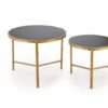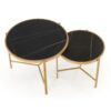 wymiary: 63/50 cm oraz 48/43 cm; zestaw 2 ław, materiał: spiek / stal malowana proszkowo, kolory: czarny marmur / złoty
