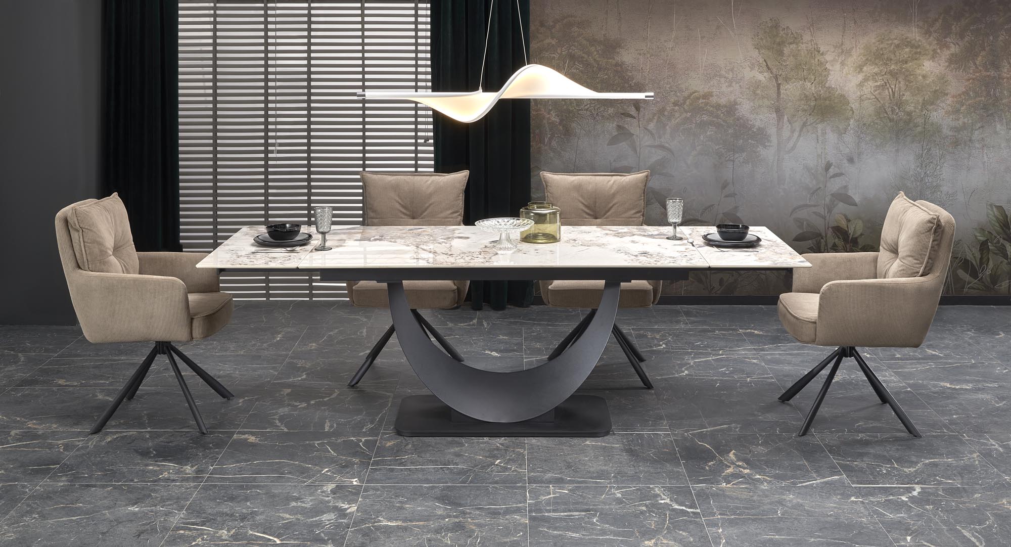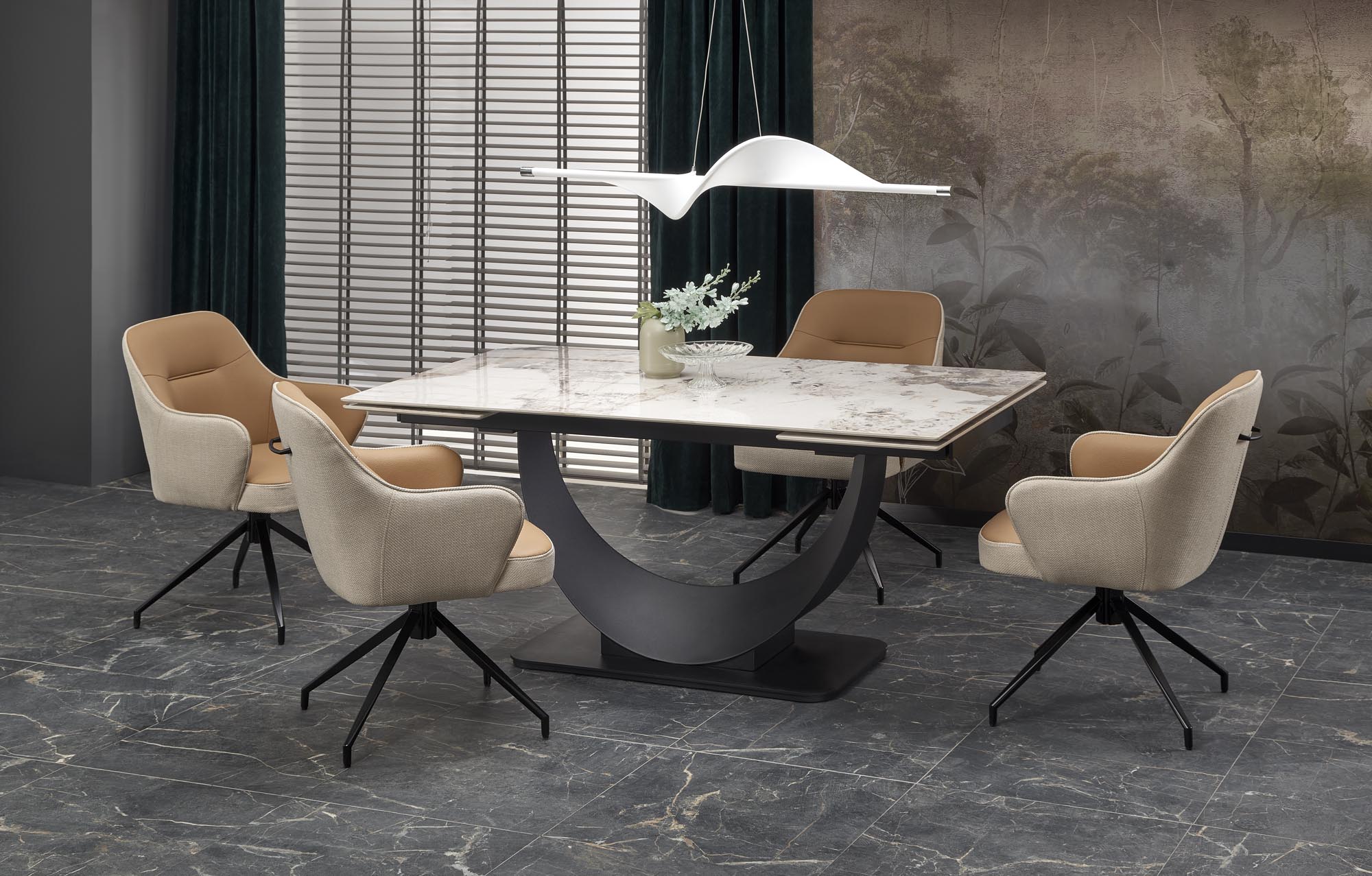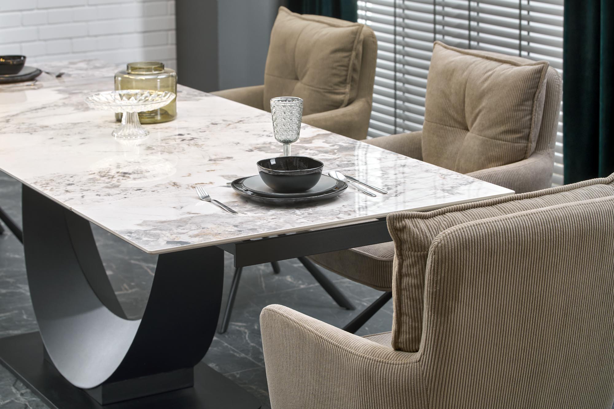 FERNANDO stół rozkładany, blat – biały marmur, nogi – czarny (3p=1szt)