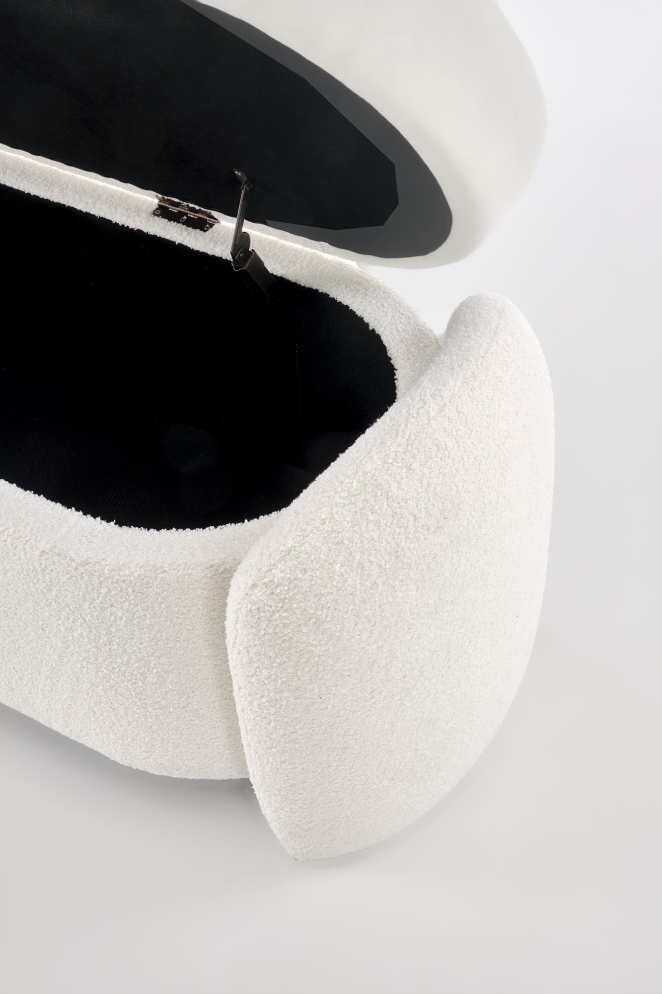 wymiary: 150/47/51 cm, ławka z funkcja pojemnika, materiał: tkanina – boucle, kolor: kremowy