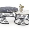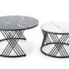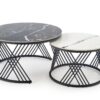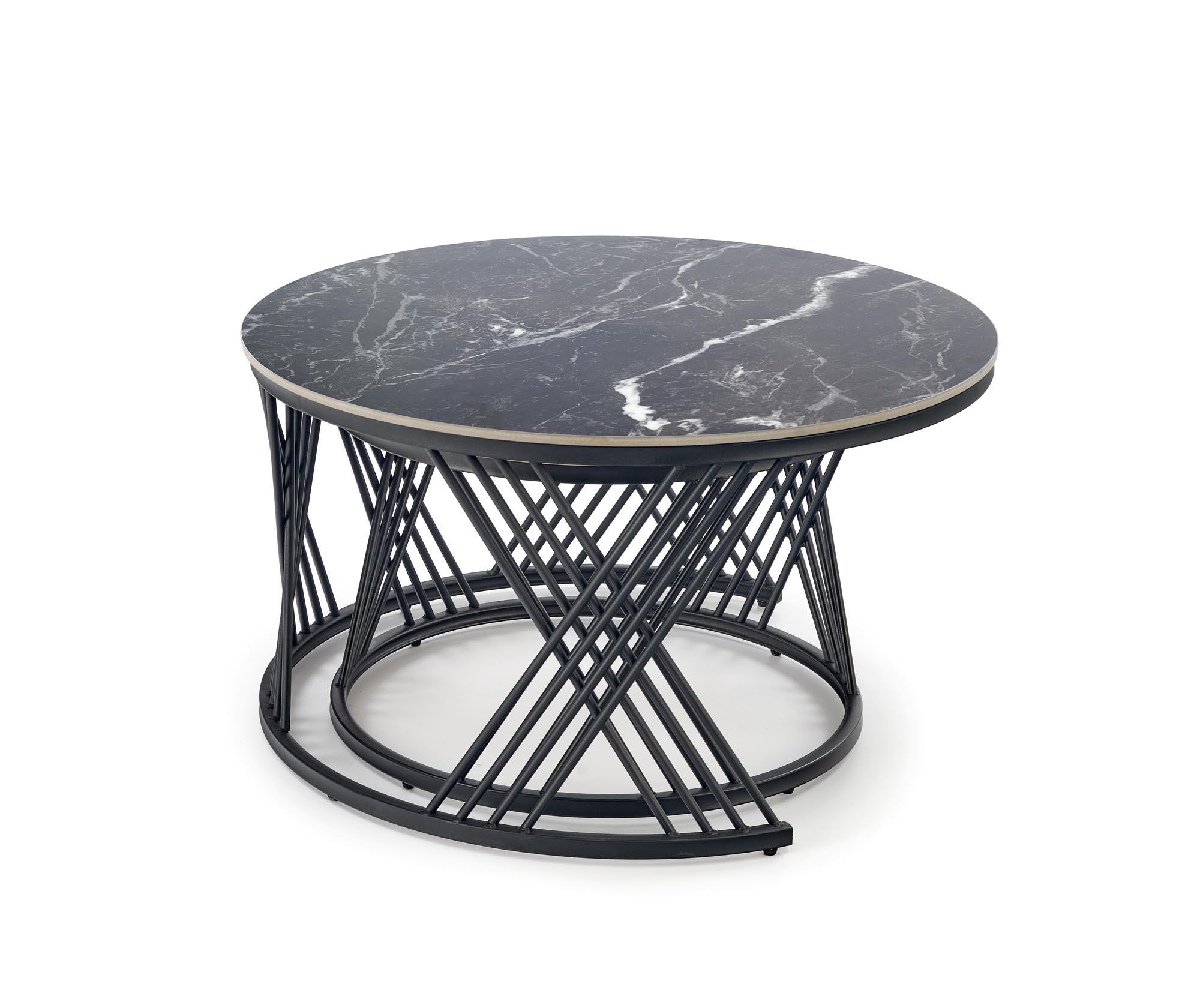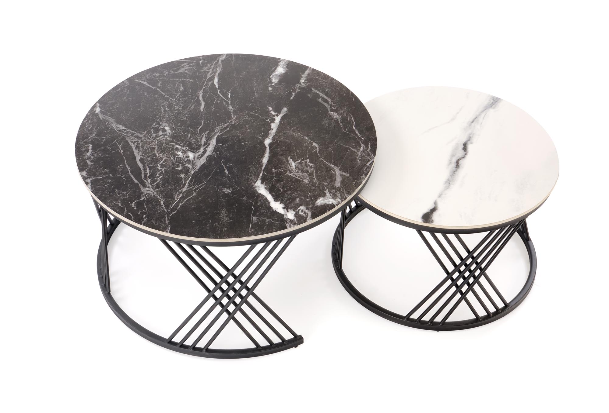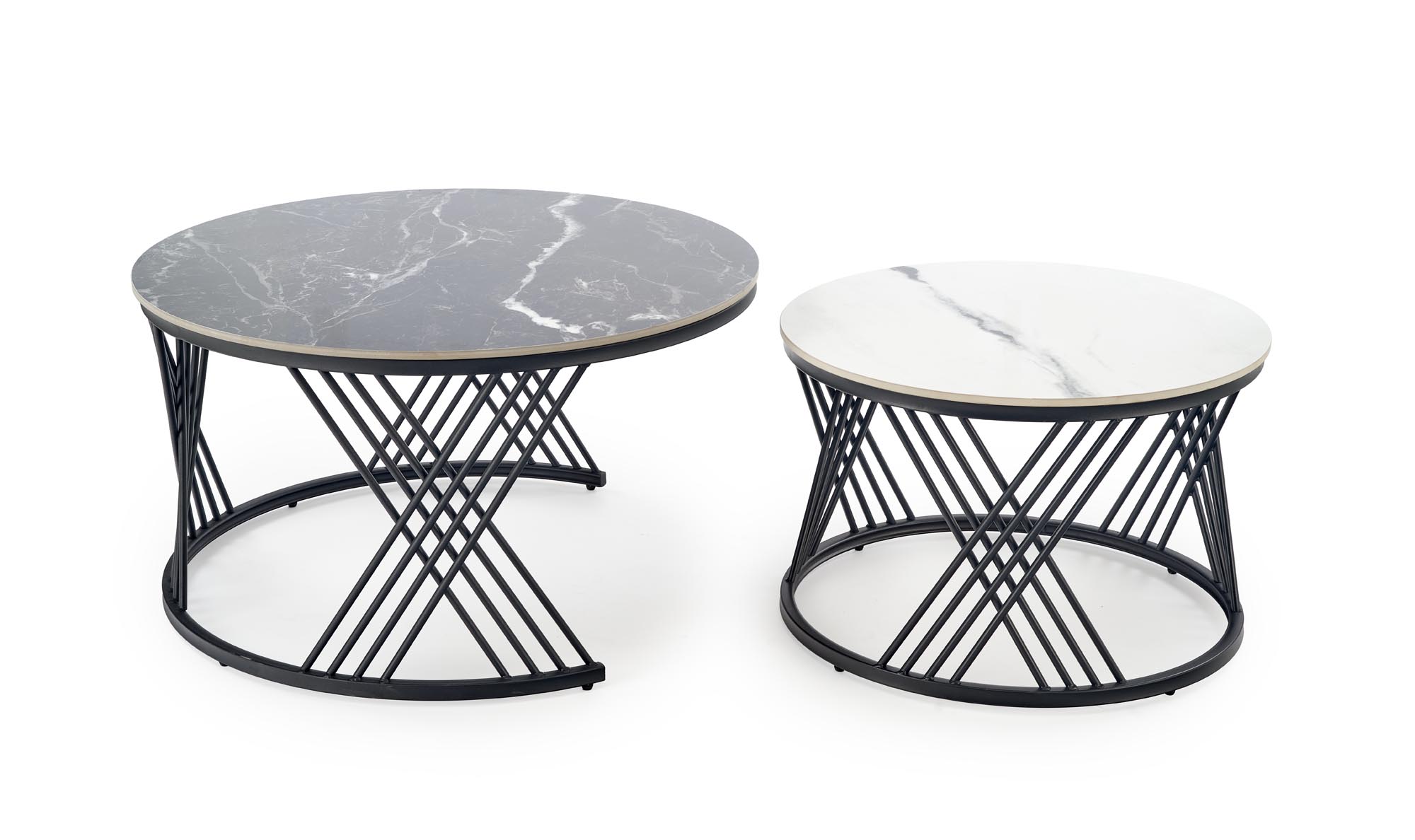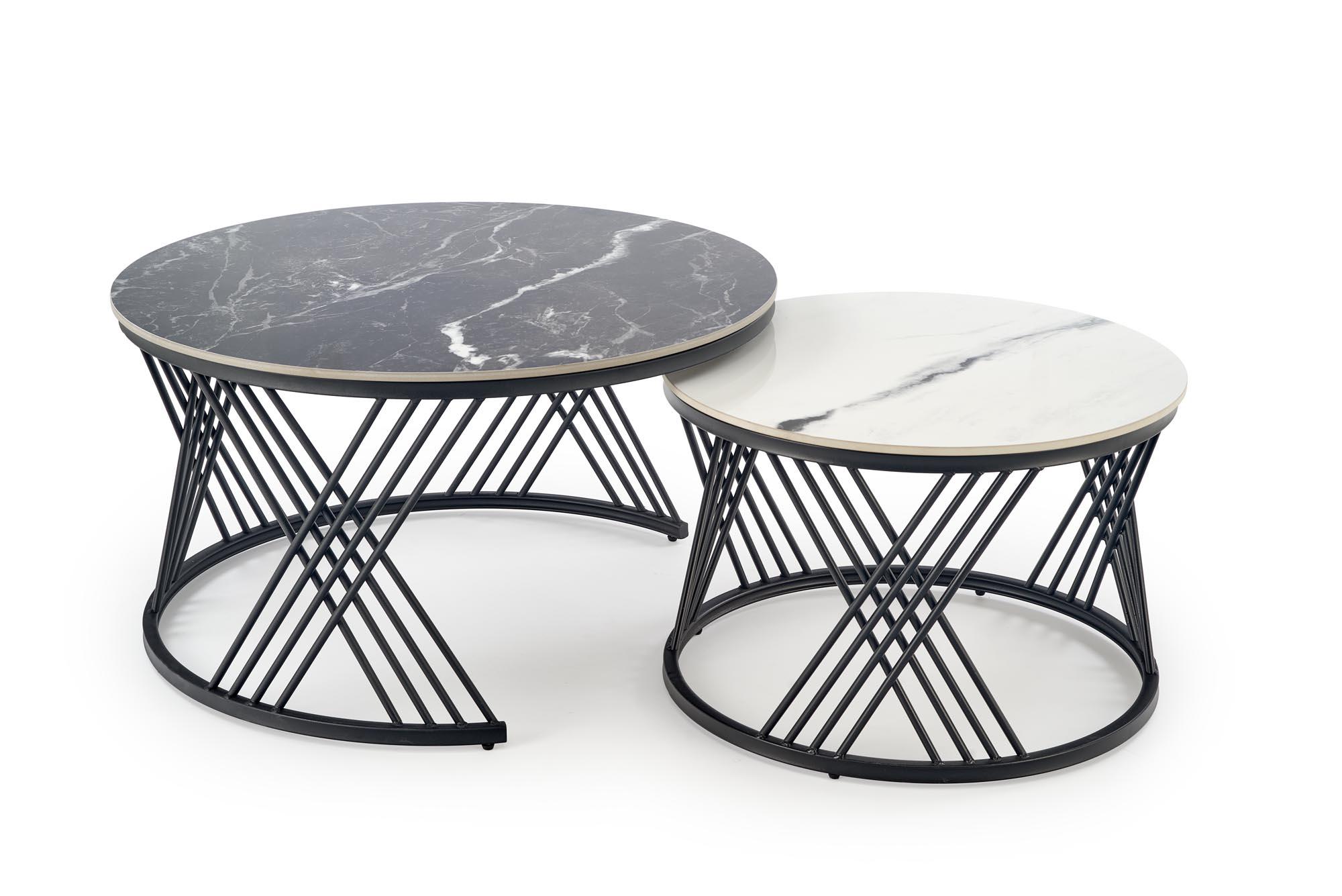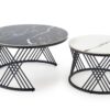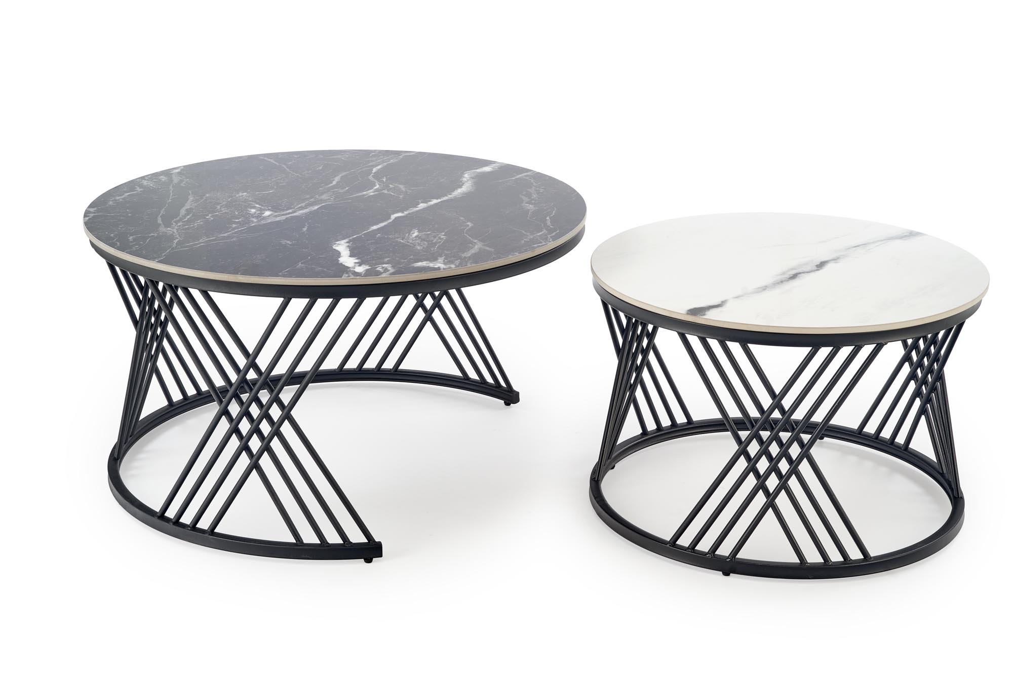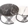 wymiary: fi60/40 cm oraz fi80/46 cm, zestaw 2 ław, materiał: spiek / stal malowana proszkowo, kolor: czarny marmur (duża) / biały marmur (mała) / czarny