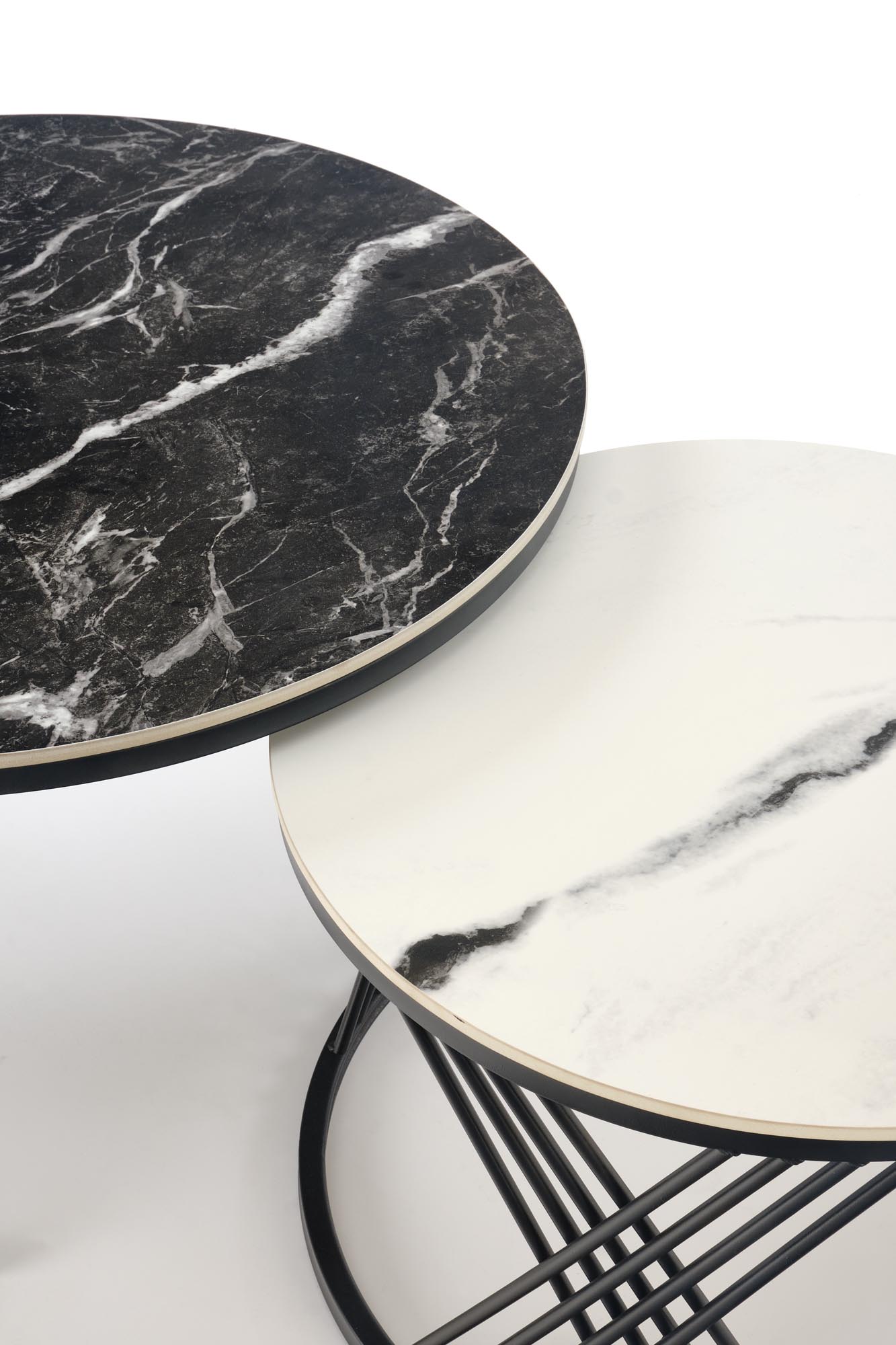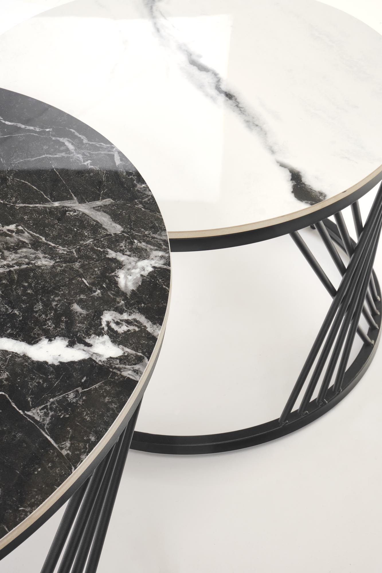 FLAMINGO zestaw 2 ław, czarny marmur / biały marmur / czarny (2p=1szt)