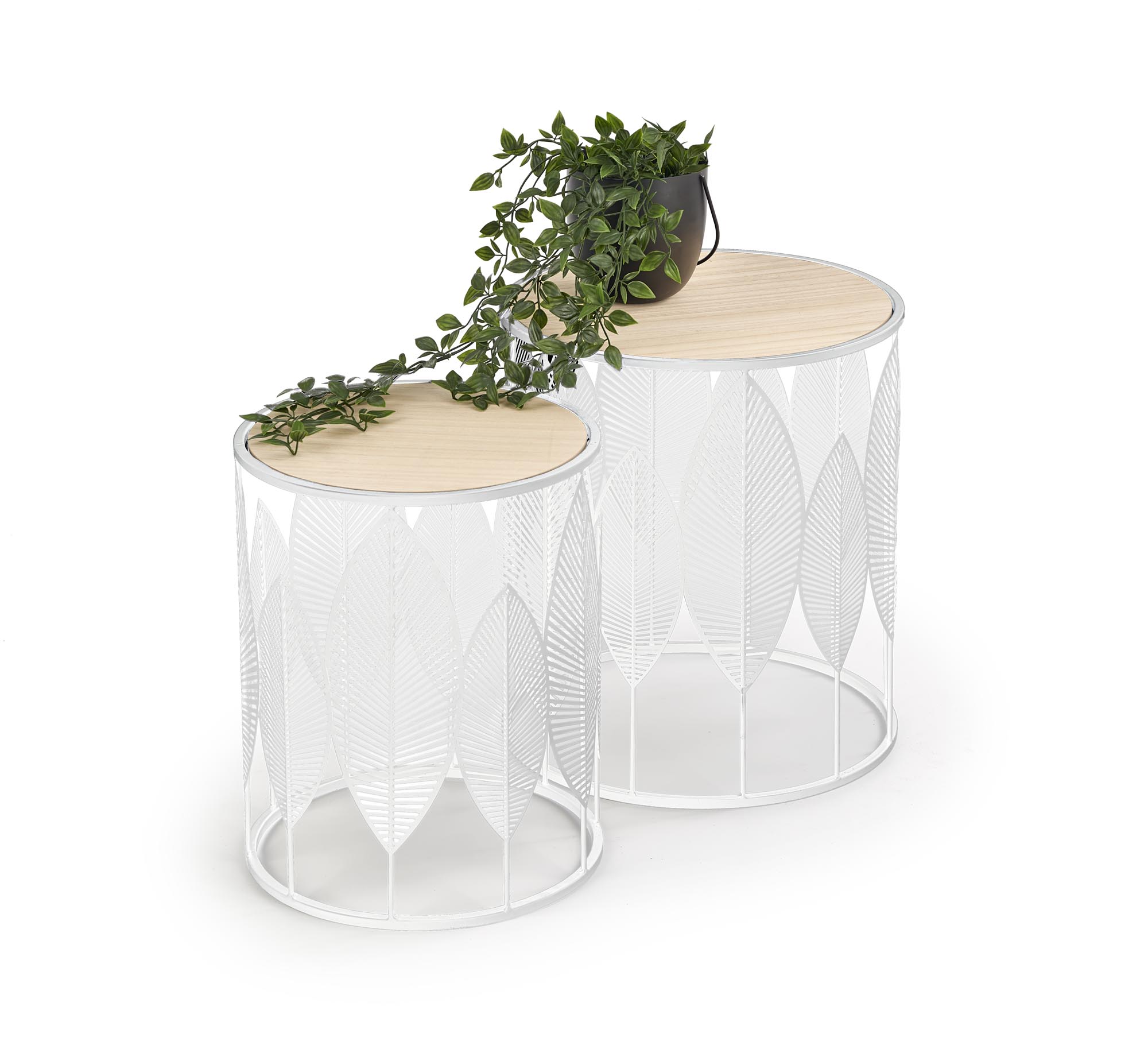 wymiary: 40/45 cm oraz 33/40 cm, materiał: MDF okleinowany / stal malowana proszkowo, kolor: naturalny – biały