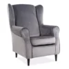 Fotel, tkanina aksamit, kolor: wg próbnika: Bluvel 14 – szary, drewno, kolor: wenge.