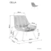 Wymiary fotela: A – 86, B – 73, C – 43, D – 52, E – 77, F – 31 cm
