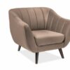 Fotel, tapicerka: tkanina aksamit, stelaż: drewno, kolor: ciemny beżowy / wenge.