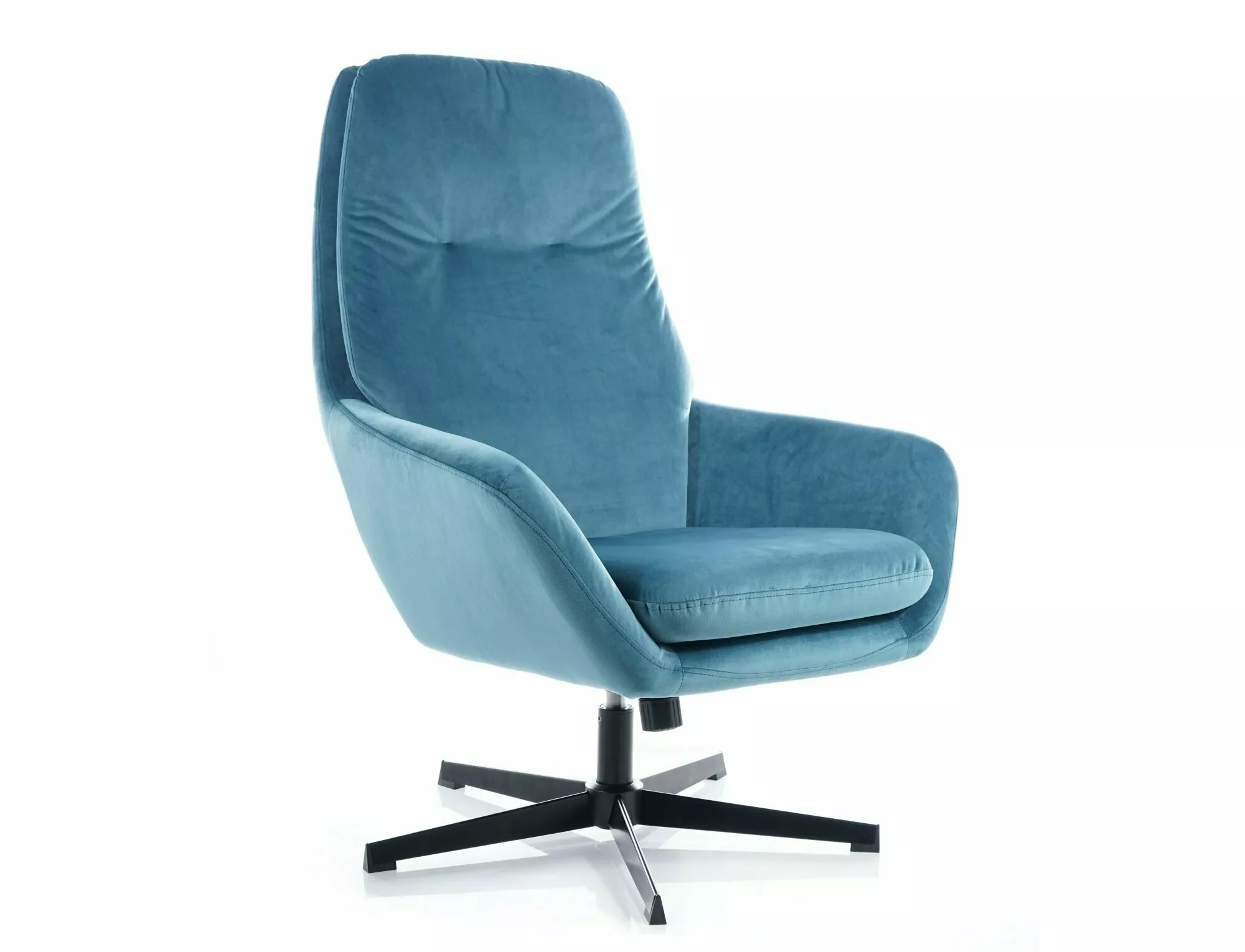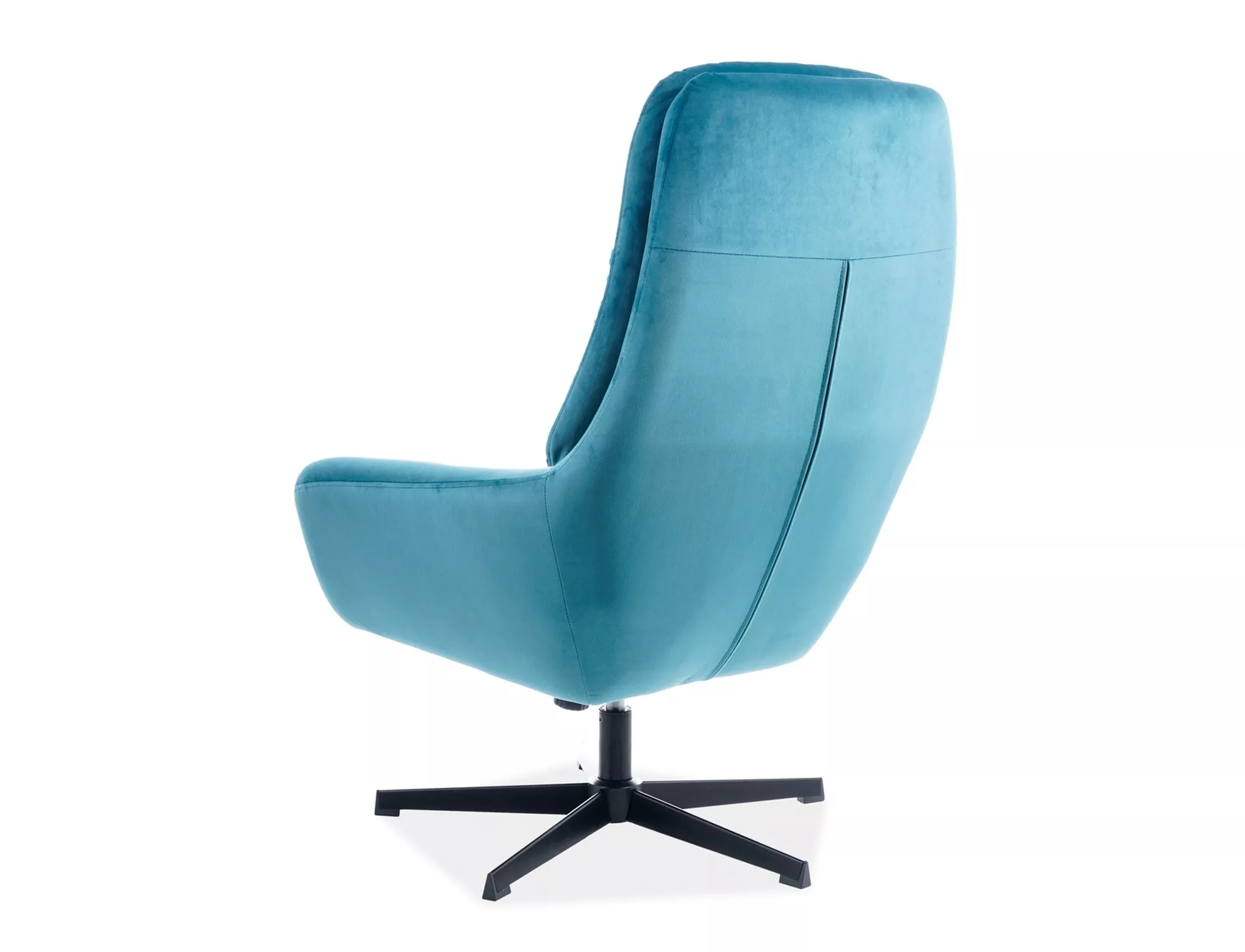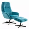 Fotel z podnóżkiem: tkanina aksamit: Bluvel 85 – turkusowy / metal, kolor: czarny, mechanizm TILT, bez regulacji wysokości.