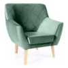 Fotel, tkanina aksamit, kolor: Bluvel 78 – zielony, nóżki drewno, kolor: buk. Pikowanie – szew zewnętrzny.