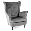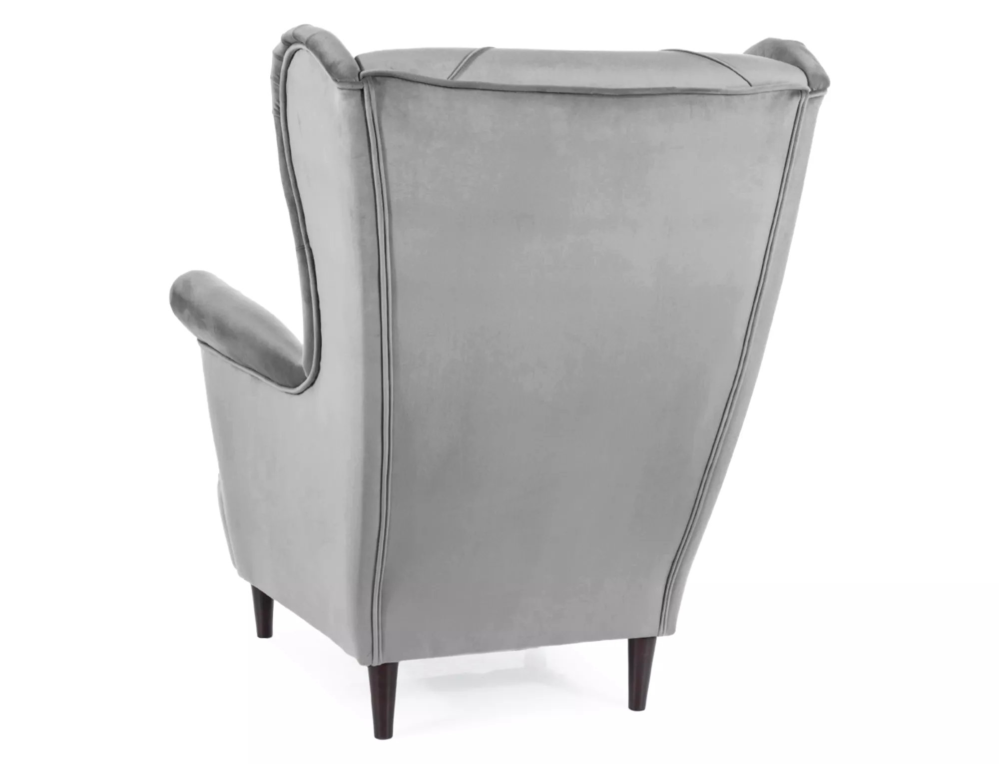 Fotel, tkanina aksamit, kolor: wg próbnika: Bluvel 14 – szary , drewno, kolor: wenge.