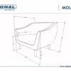 Wymiary fotela: A – 83, B – 105, C – 43, D – 56, E – 85, F – 12 cm