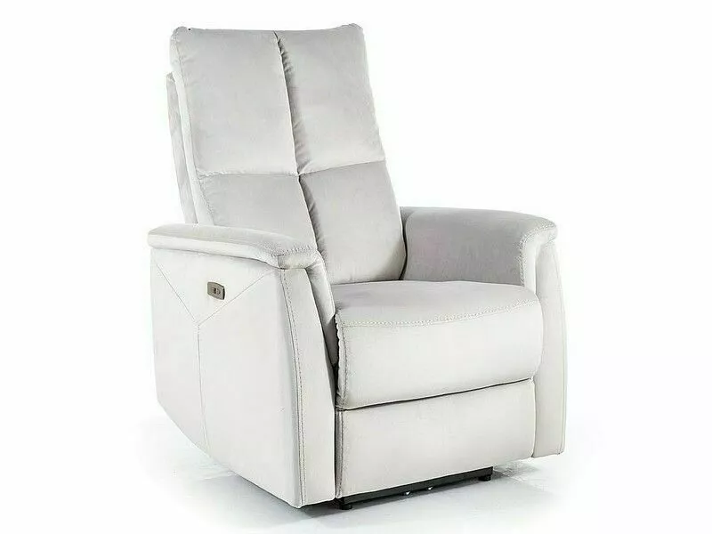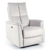 Fotel rozkładany elektrycznie, tkanina aksamit: Bluvel, kolory: jasny szary 03. W panel sterowania wbudowane gniazdo USB.