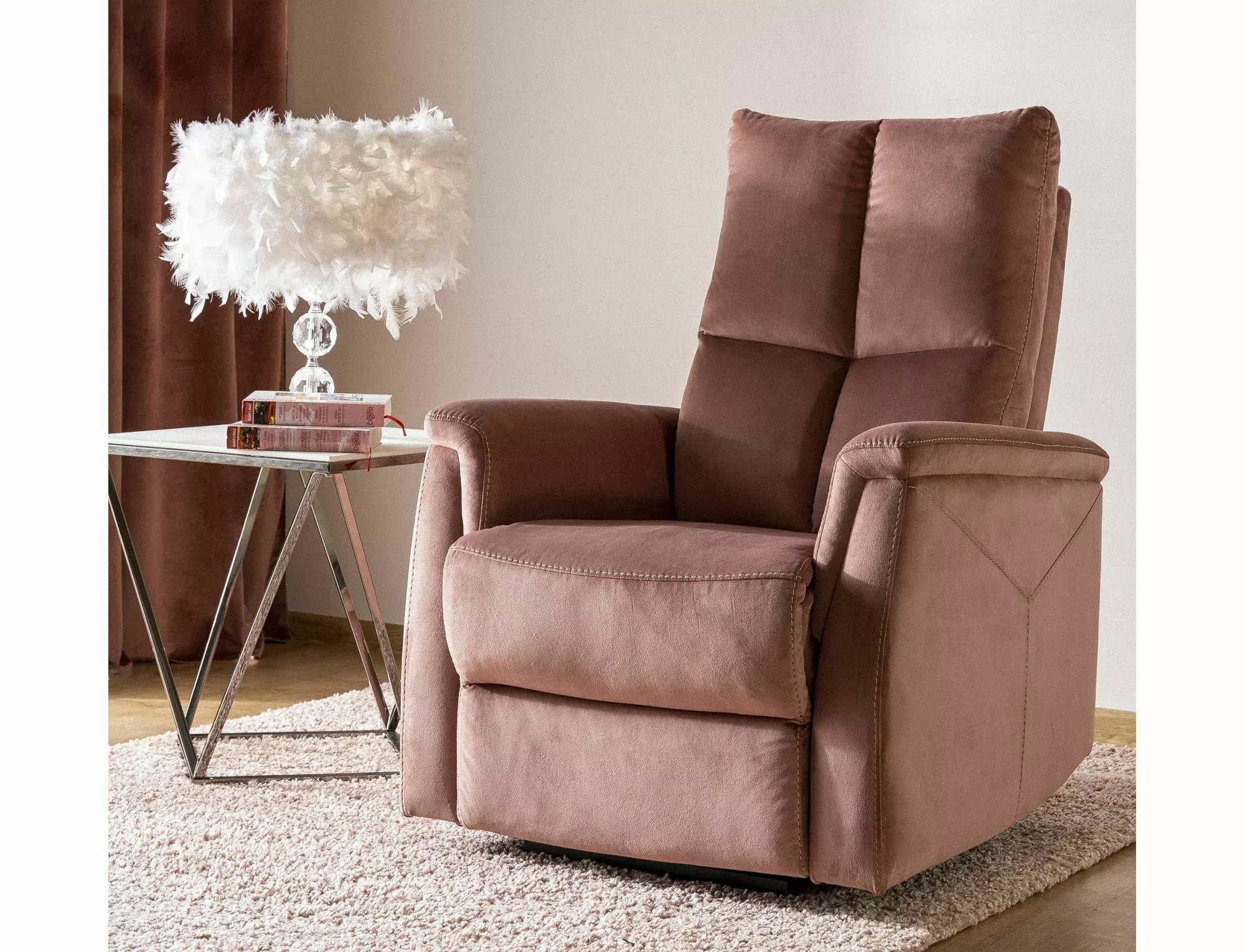 Fotel rozkładany elektrycznie, tkanina aksamit: Bluvel, kolory: antyczny róż 52. W panel sterowania wbudowane gniazdo USB.
